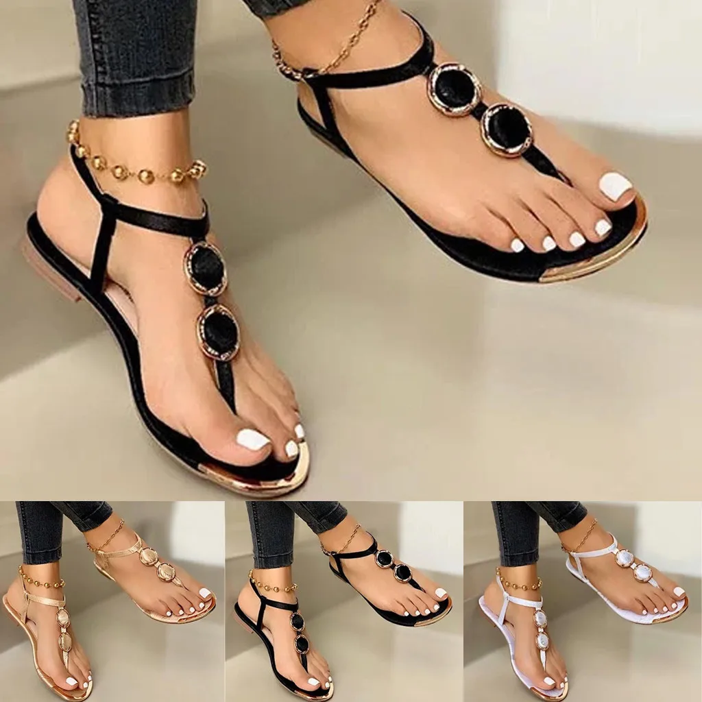 Летние женские сандалии, женские модные шлепанцы, повседневная обувь с открытым носком, сандалии на плоской подошве с ремешком с пряжкой, римские пляжные сандалии, модель D9 #