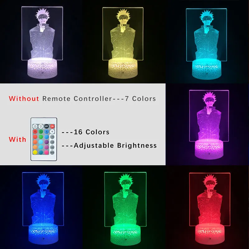 Светодиодсветильник лампа с 3D рисунком для малышей, акриловый ночник с USB управлением через приложение для игры в аниме ююютсу, кайзен, Джоджо, Сатору, атмосфера, подарок для детей