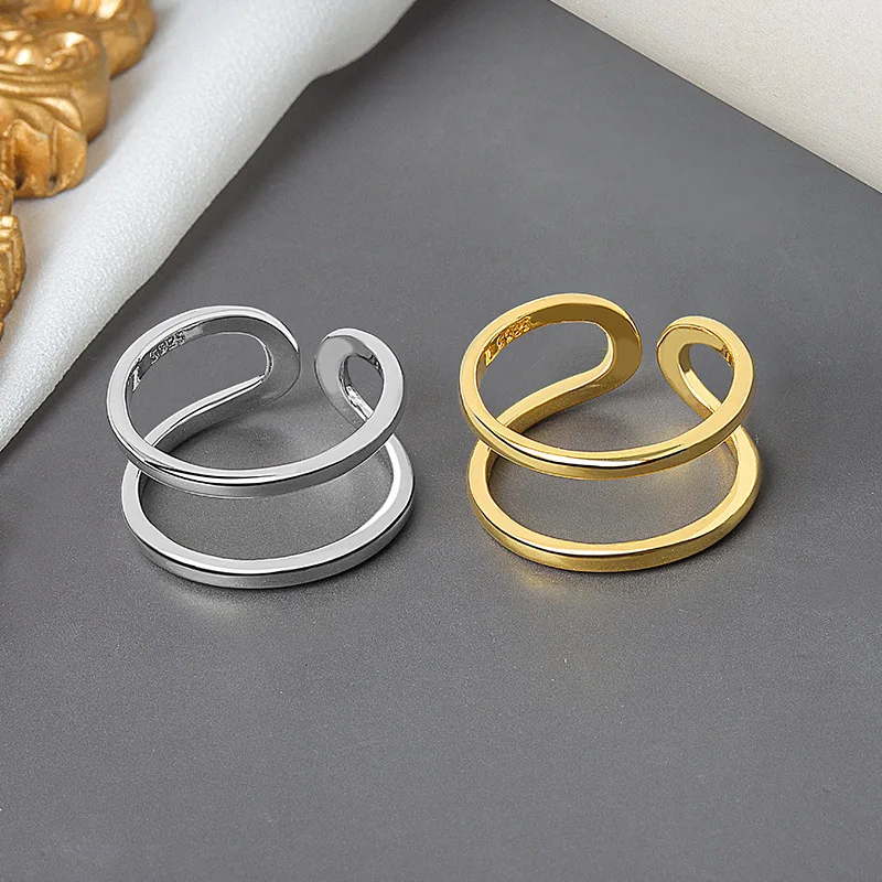 Ливи серебро Цвет мода двойной изогнутых линий Регулируемые кольца для женщин Золотой Цвет кольцо вечерние ювелирные изделия