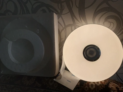 заказ пришел быстро. упаковка целая без деформации, товар упакован отлично. Светильник работает как от пульта, так и от приложения в телефоне (это я про свет). А вот музыку через Bluetooth с телефона подключить не удается.