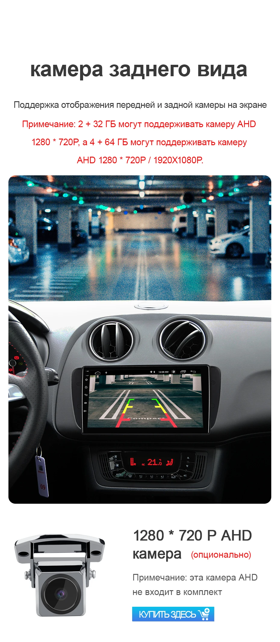 Support forSeat Ibiza 6j 2009-2013 multimedia Rear view camera radio