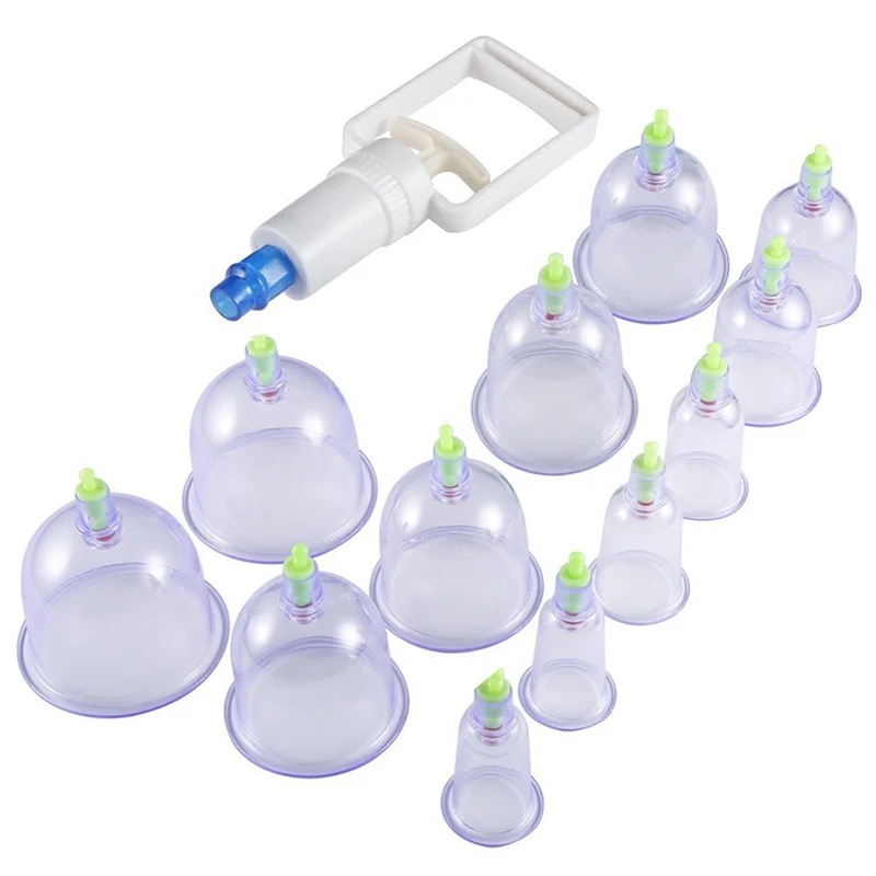 Дешевые 12 шт. чашки вакуумный баночный массаж вакуумный устройство для акупунктуры терапевтический массажер кривой всасывающие насосы, хороший подарок для ребенка