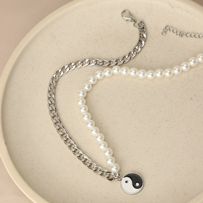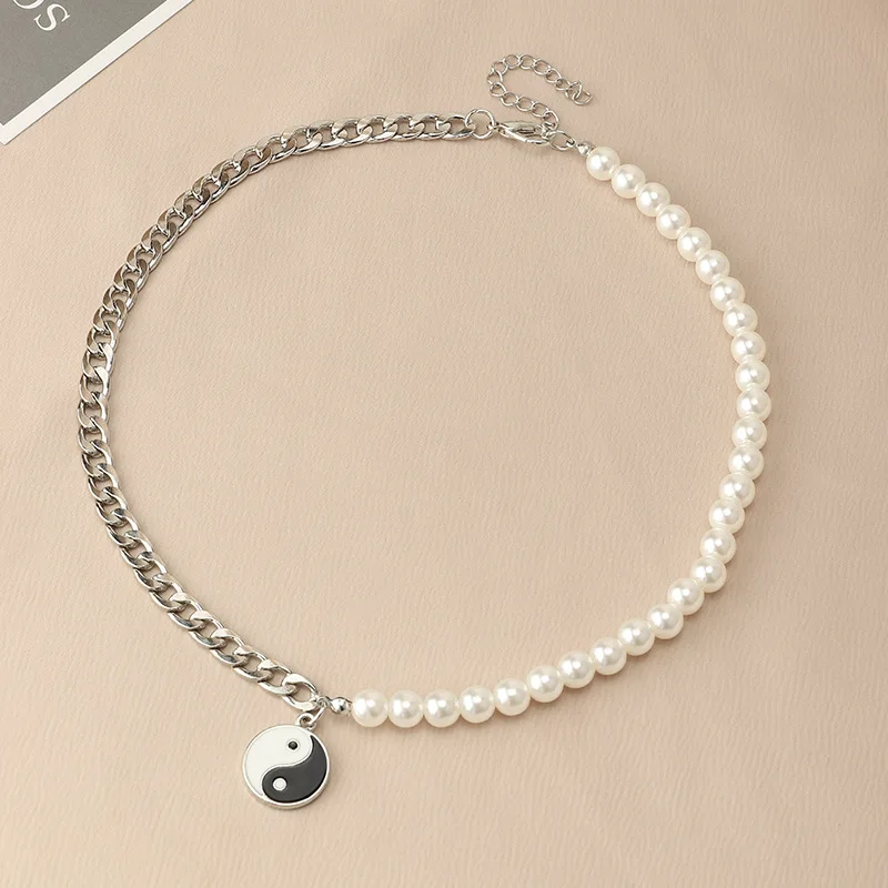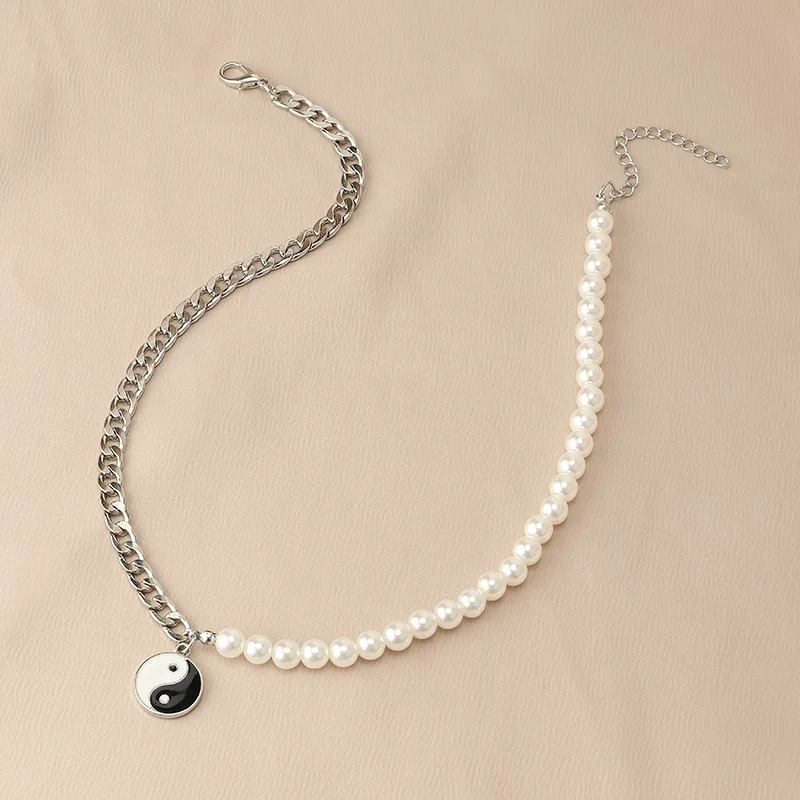 Модные ювелирные изделия, креативное жемчужное ожерелье, подвеска со Сплетницей, Инь-Янь, Тай-Чи, длинная цепочка до ключиц, женские жемчужные ожерелья для вечерние