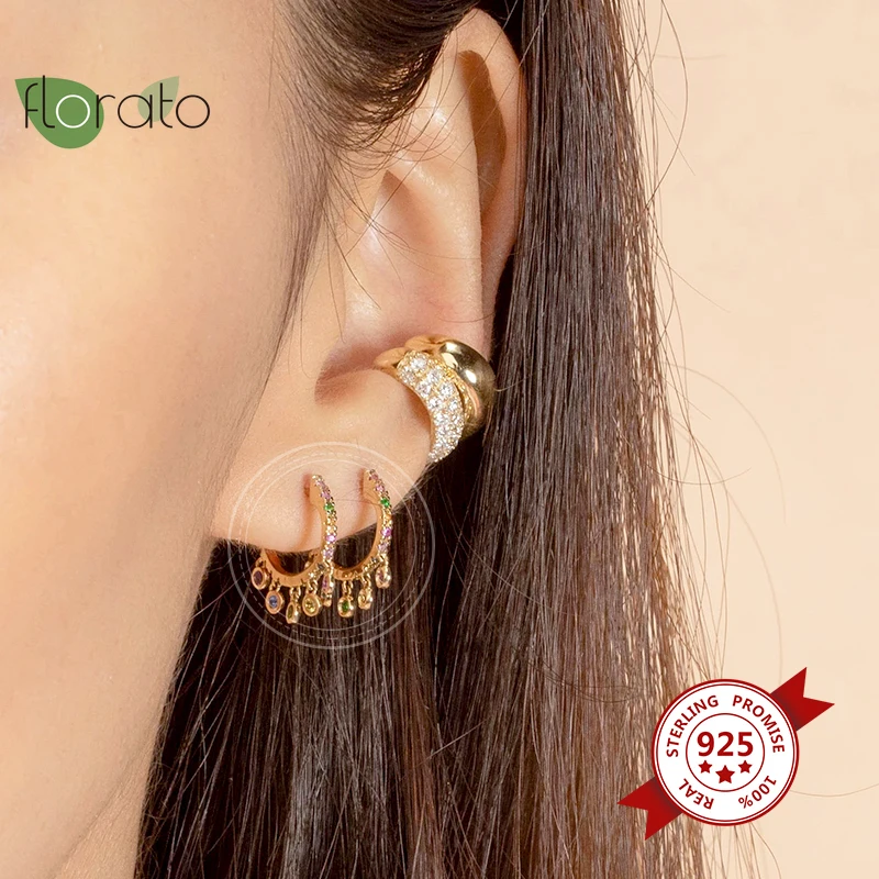 Женские Висячие серьги Yuxintome из стерлингового серебра 925 пробы с цирконием, блестящие стразы, милые серьги-кольца, модные вечерние ювелирные изделия, подарки