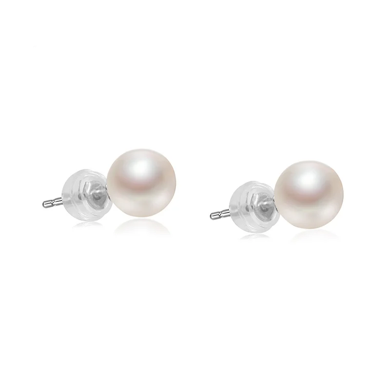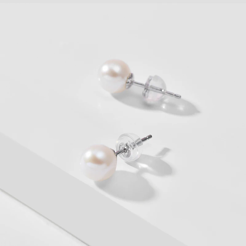 Серьги-гвоздики из серебра 925 пробы с натуральным пресноводным жемчугом 6-7 мм