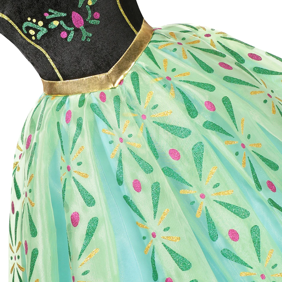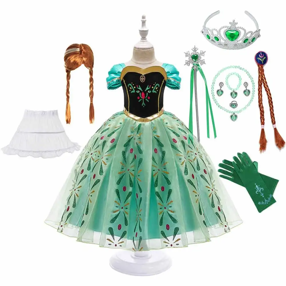Маскарадное платье принцессы для девочек, зеленое бальное платье Анны для коронации, Детский костюм для косплея Снежной Королевы на Хэллоуин, вечернее платье для девочек