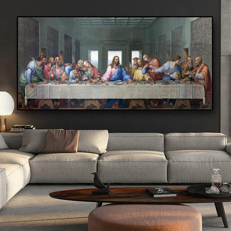 Плакаты и принты Тайная вечеря Леонардо да Винчи, настенная живопис...