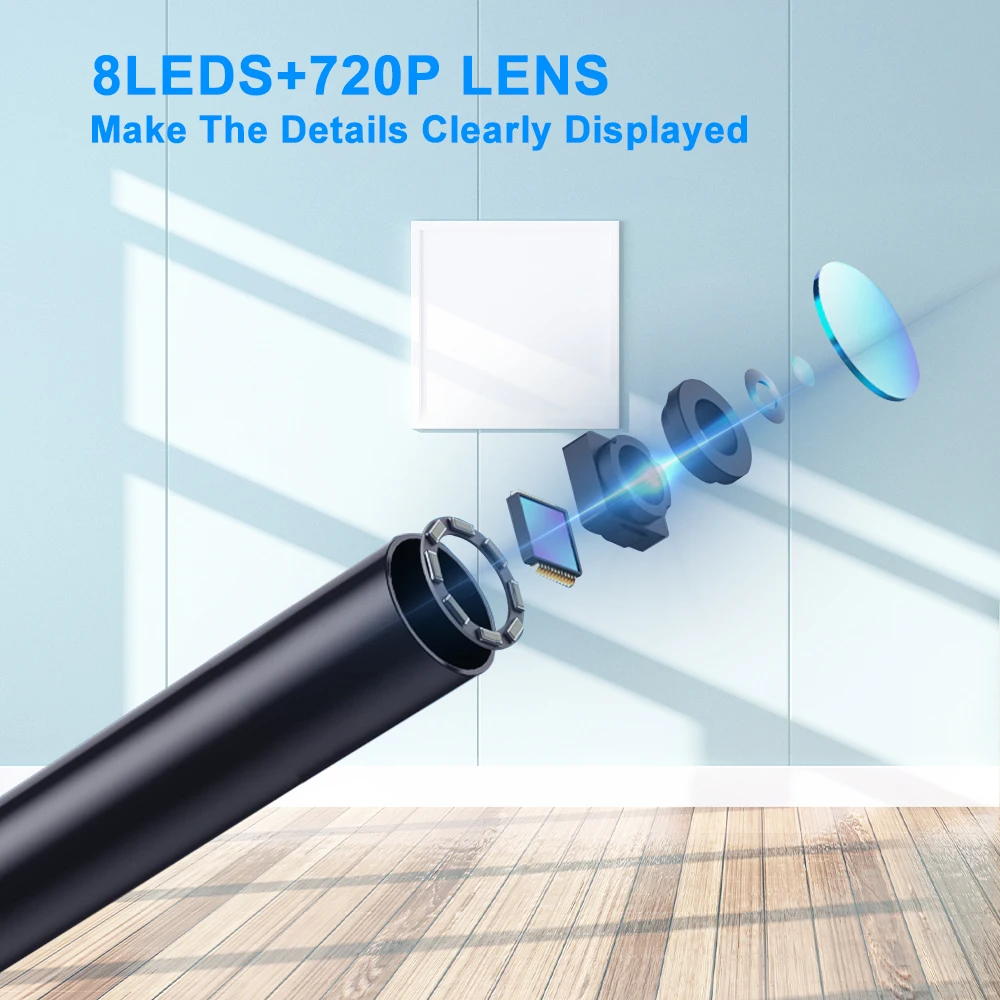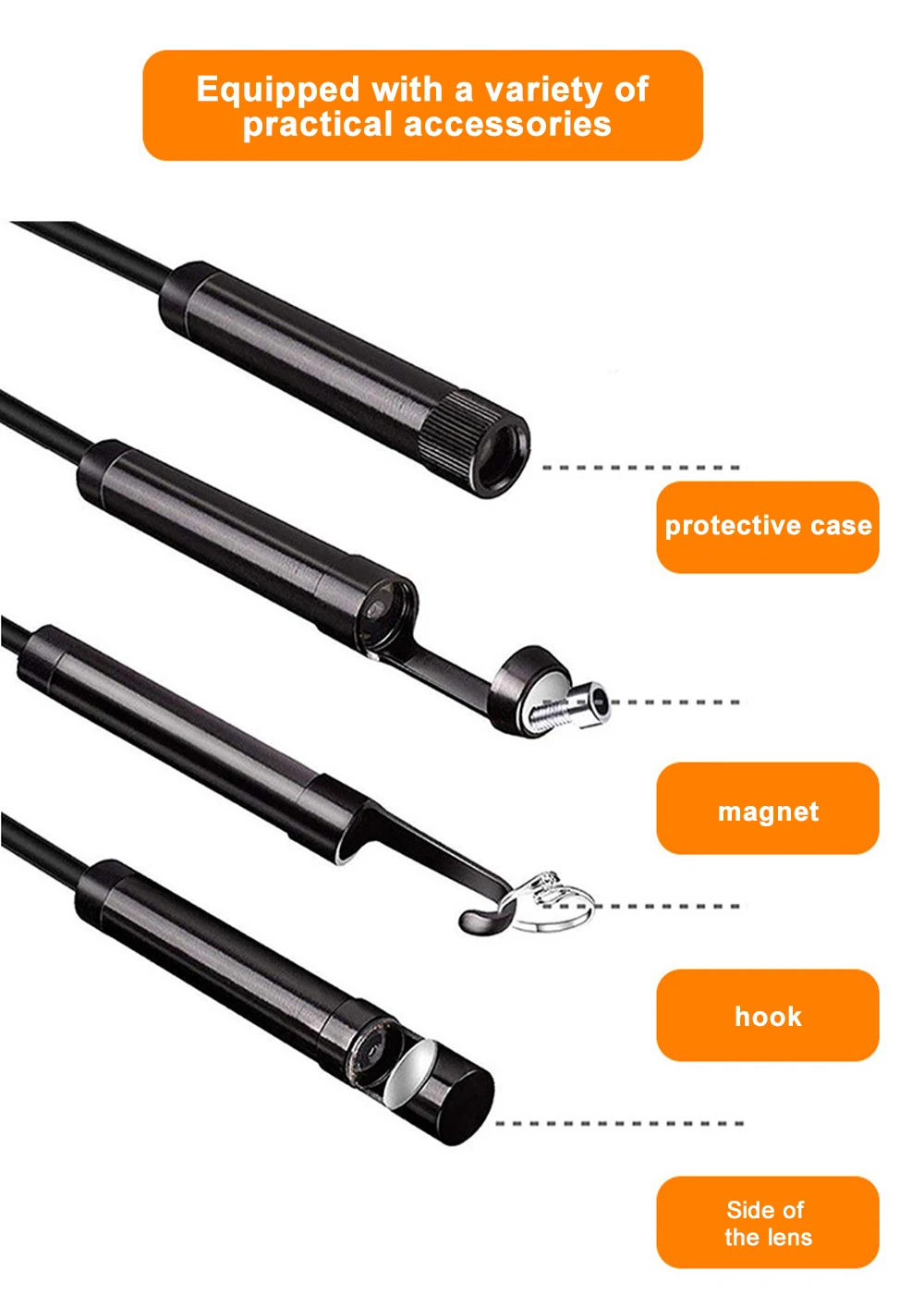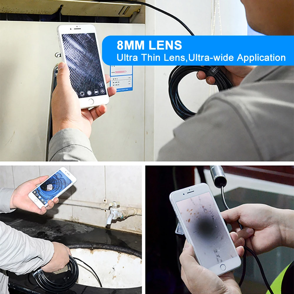 Эндоскоп с камерой, Wi-Fi, 8 мм, 3 Мп, HD, с жестким кабелем, мини-эндоскоп для автомобиля, IOS, iPhone, Android, Samsung