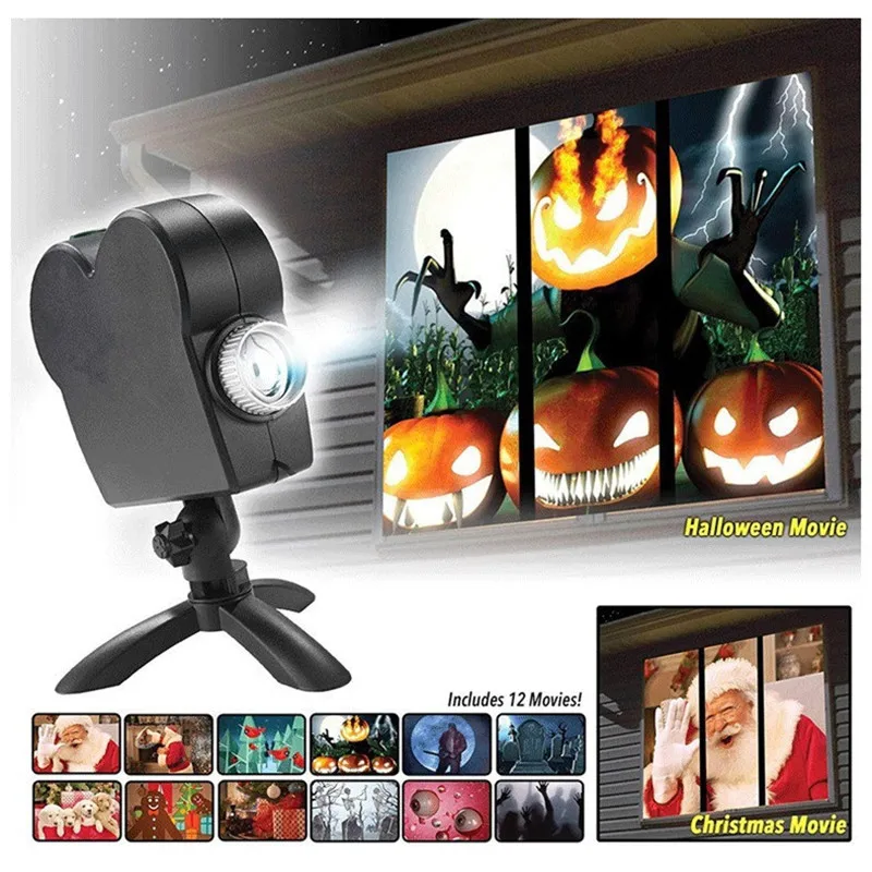 12 пленочных оконных прожекторов праздничные прожекторы Рождество Хэллоуин ТВ новый оконный проектор детское уличное освещение