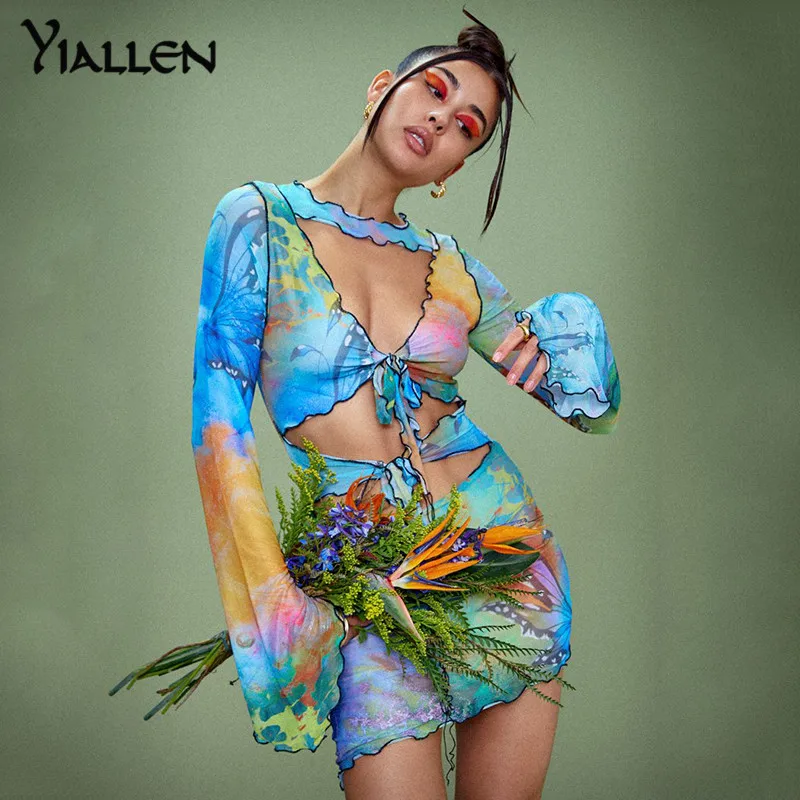 Yiallen летнее Милое сексуальное платье с глубоким вырезом без рукавов с открытой спиной и принтом бабочки для женщин с длинным рукавом, одежда для плавания