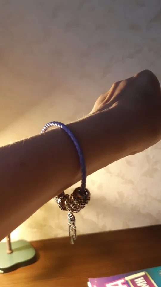 Долго не могла понять какого размера выбрать браслет, чтобы не болтались, небыло впритык и шармы поместились - на запястье 16см выбрала 17 размер и все отлично подошло ( смотрите на фото). Браслет приятного качества, цвет нежный, красивый. Как будет в носке проверим. В Минск пришёл быстро за пару недель.