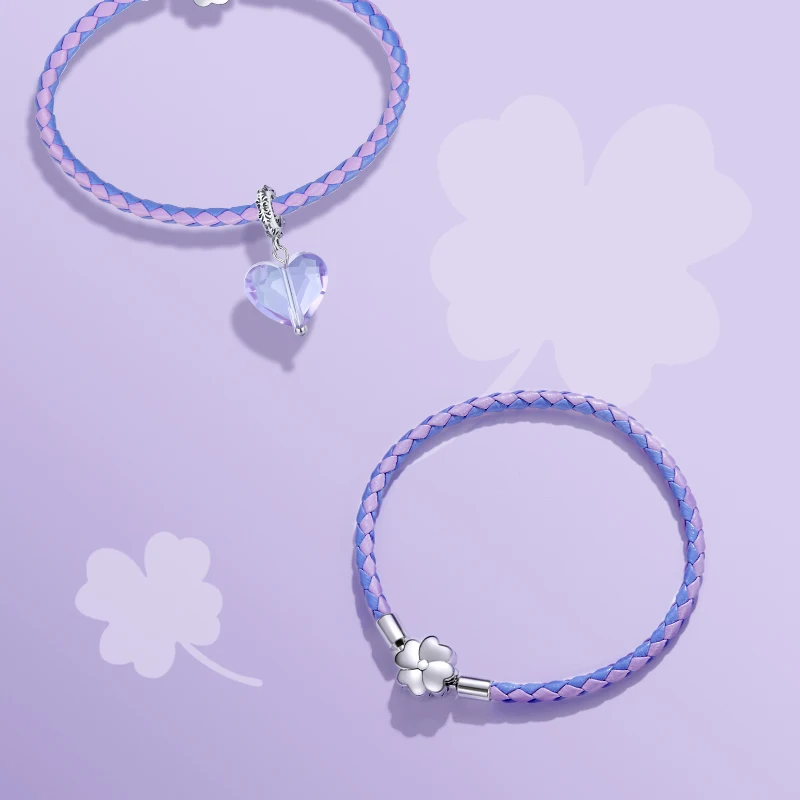 Браслет на удачу из серебра 925 пробы, женский, трехцветный, с клевером из натуральной кожи