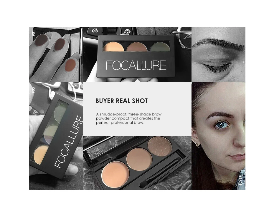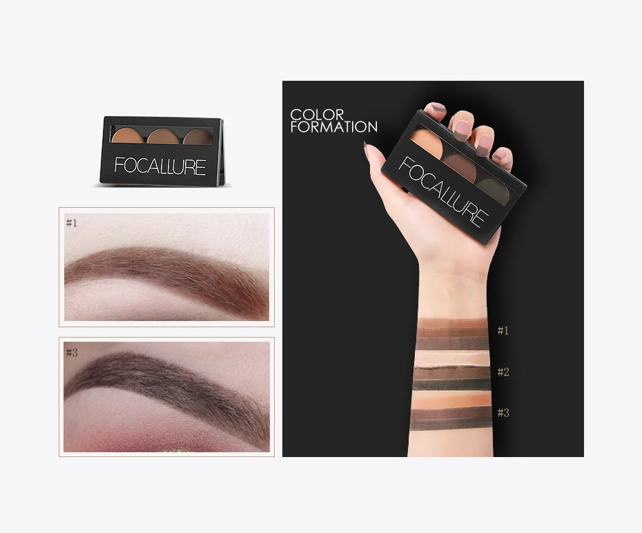 FOCALLURE 3 цвета, Палетка пудры для бровей, усилитель бровей, водо...
