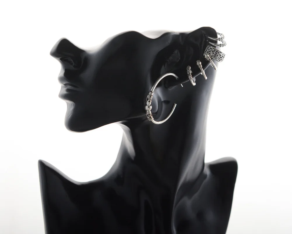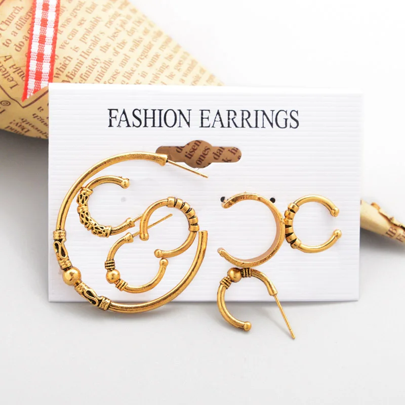 Серьги для Для женщин ювелирные изделия пирсинг в готическом стиле Винтаж Комплект сережек-колец в богемном стиле серьги-гвоздики Кафф Индия ботинки в стиле готика, панк, ретро, Эмо Аксессуары Хиппи