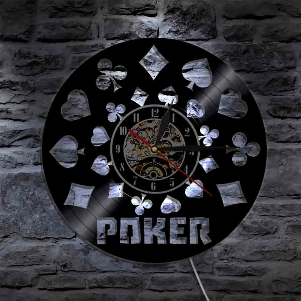Игральные карты настенные часы для казино покер король виниловая запись азартные игры домашний декор искусство бесшумные часы современный дизайн