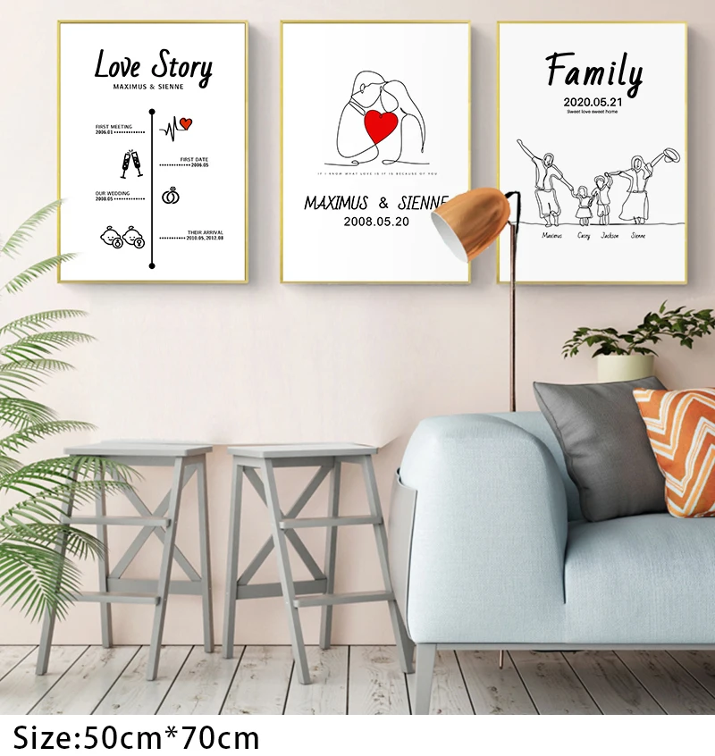 Картина на холсте, милый семейный Романтический постер, индивидуальный подарок с именем даты, сделай сам, принт, художественная картина для влюбленных пар, декор для стен комнаты