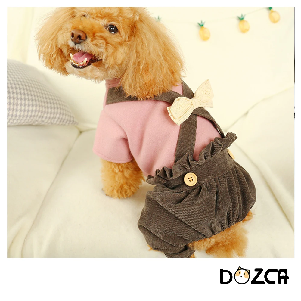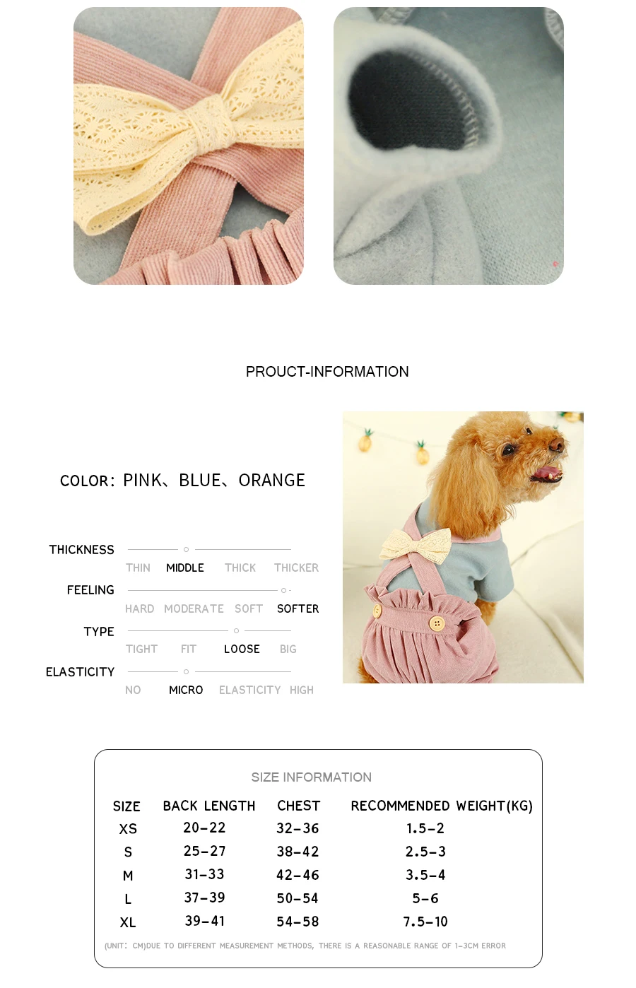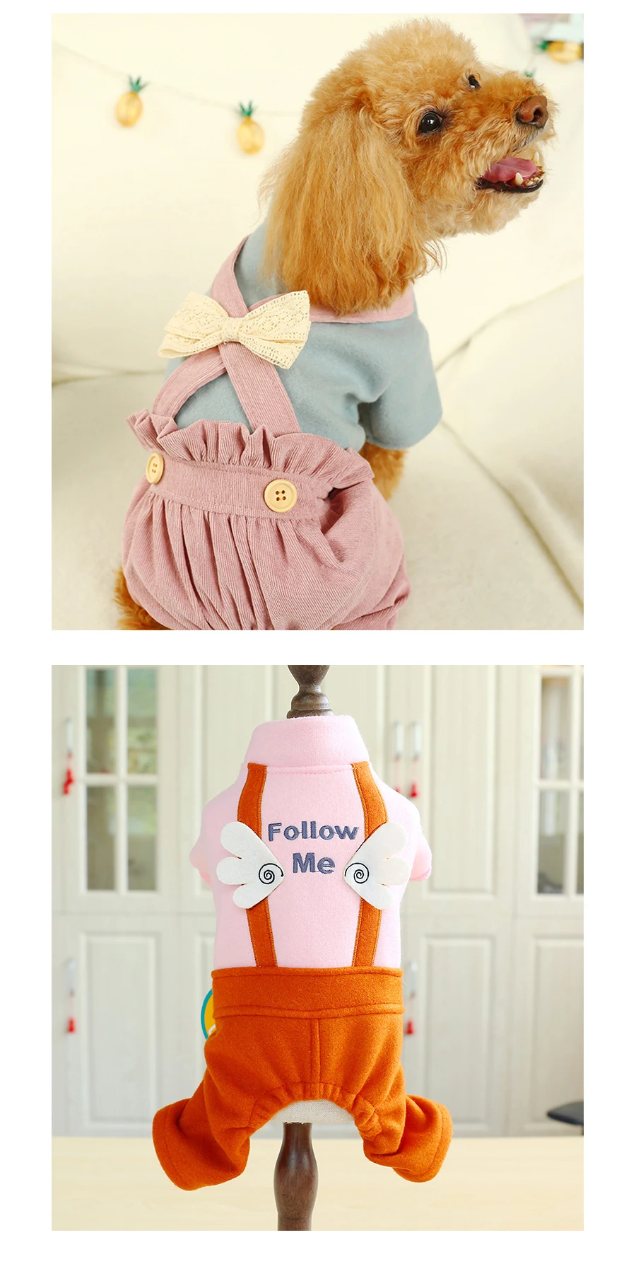 Комбинезон для собак, 4 цвета, мультяшный Плюшевый комбинезон с бантом на весну, осень, зиму, для маленьких кошек, для домашних животных, дышащие брюки на подтяжках