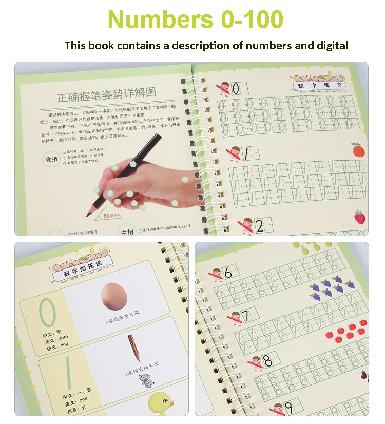 Размер: 18,8*13 смПодходящий возраст: 2-4 годаЯзык: 0-100Материал: белый картонПосылка включает в себя: 1 книга + 1 ручка + 5 заправок + 1 держатель для ручекМы использовали волшебные ручки для письма. После написания на некоторое время, шрифт исчезнет и вернется к исходной форме, которая может быть использована повторно.Примечание: возможны отклонения в размере от 1 до 3 мм из-за ручного измерения! Спасибо!Реальный цвет может немного отличаться от цвета на фотографии в связи с настройками разрешения, яркости, контрастности экрана компьютера и т. д.Если у вас есть какие-либо вопросы, пожалуйста, свяжитесь с нами, прежде чем оставить отрицательный отзывы, мы постараемся сделать все возможное, чтобы служить вам, спасибо за понимание!Надеюсь, у вас есть хорошие покупки!