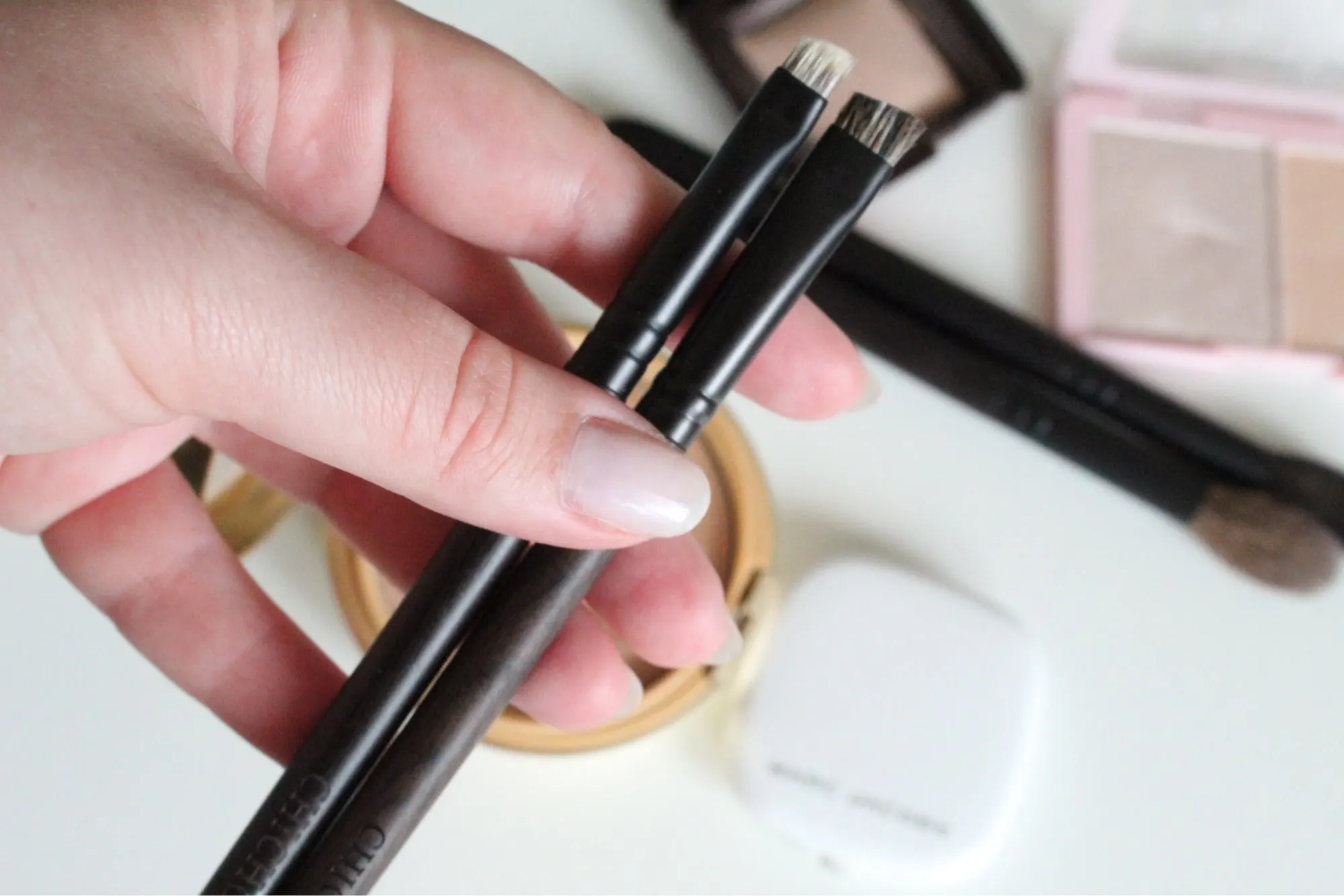 Доставили быстро. Упакована кист в черную коробку с логотипом бренда и почтовый пакет с пузырчатой пленкой. Рукоятка выполнена из сандалового дерева, на кончике - выбит логотип бренда. Ворс у данной кисти скошенный, натуральный, длина около 6мм, ширина 8мм. Данная кист отлично подойдет для прорисовки бровей.
