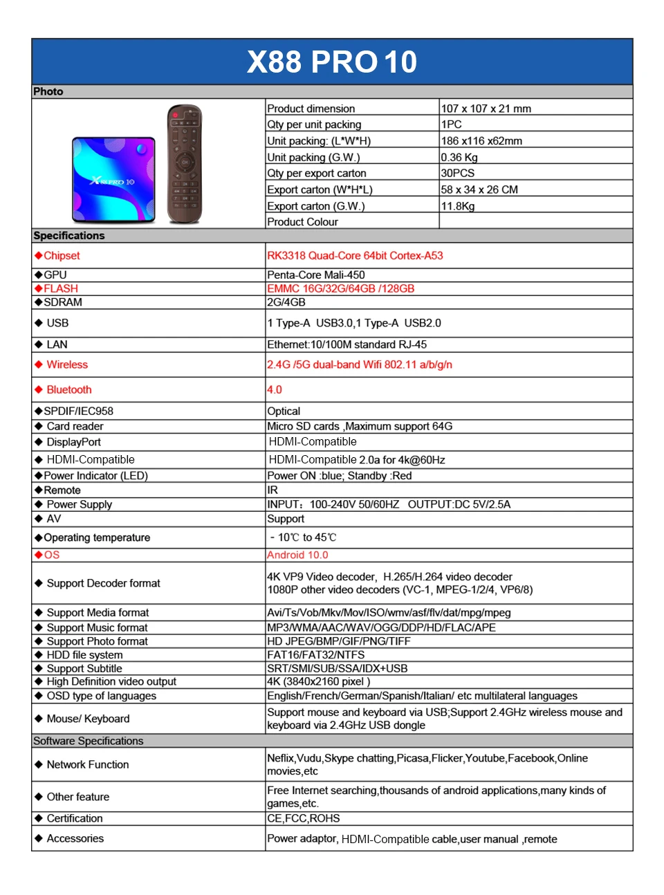 Номер моделиX88Pro 10 QHDTV Box