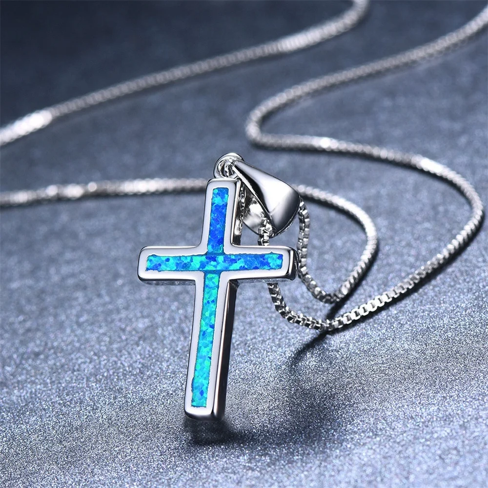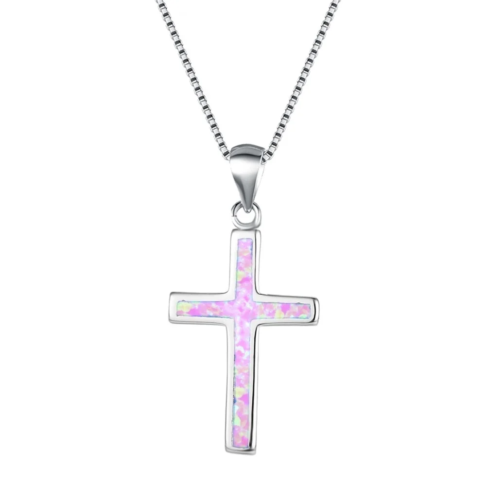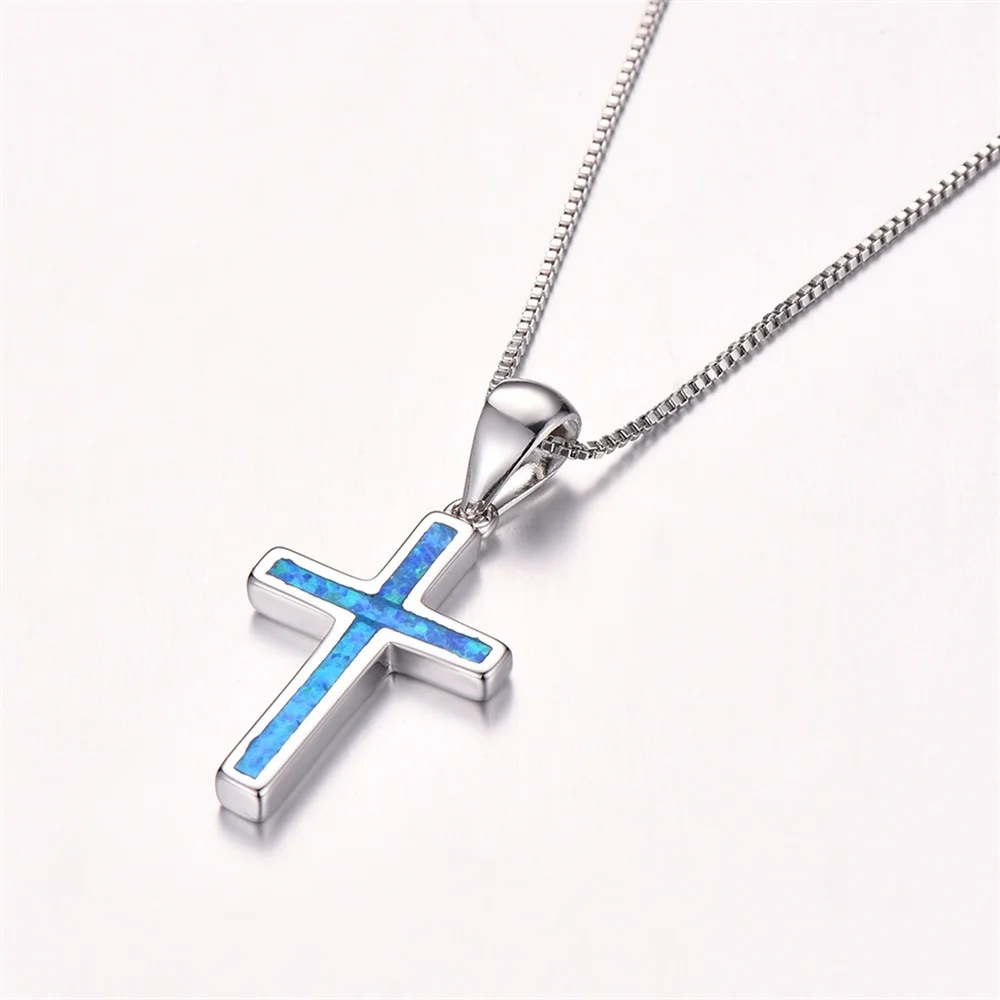 Простой кулон-крест для женщин, модное ожерелье, сплав, огненный опал, подвески, свадебные аксессуары, подарок для девушки на Рождество, бесплатная доставка