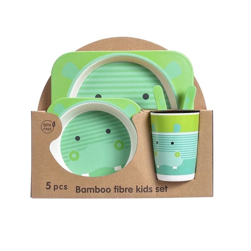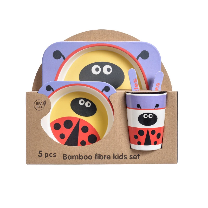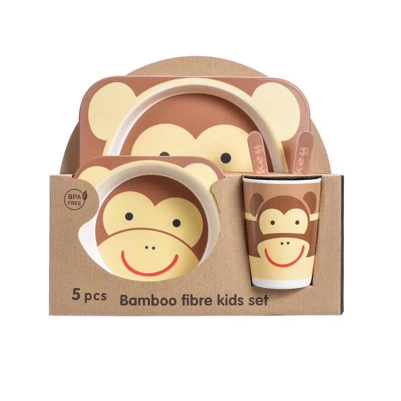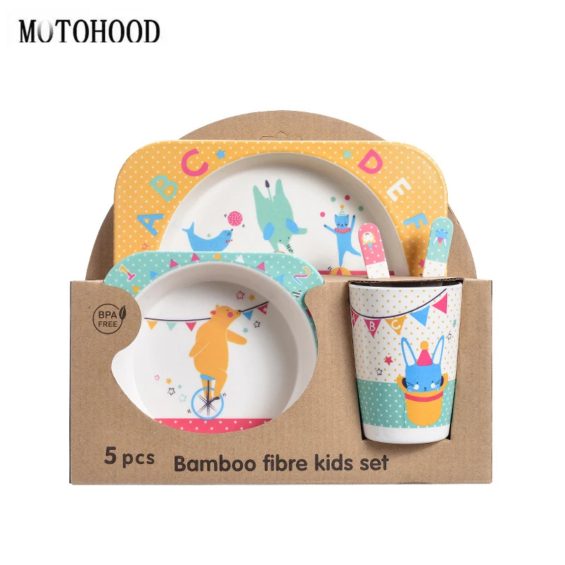 Бамбуковая посуда MOTOHOOD, набор из 5 предметов, Детская обеденная тренировочная чаша, чашка, ложка, вилка, миска для кормления ребенка, посуда