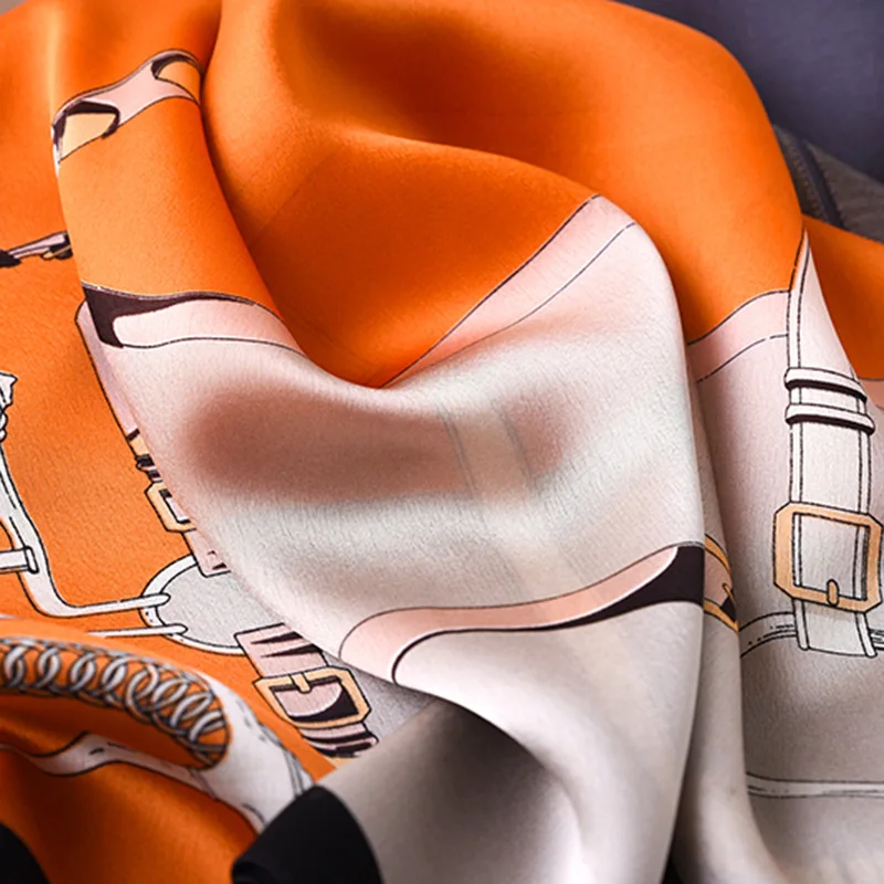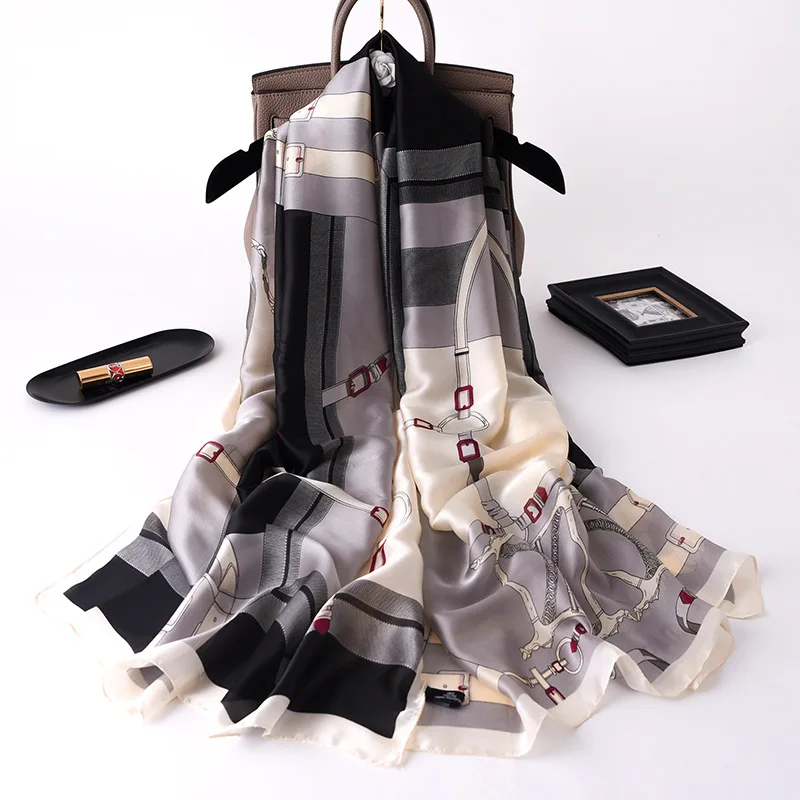 Популярные шаль с принтом цепей, пончо и накидки, модный шейный платок, пляжные шарфы, летний солнцезащитный атласный шелковый шарф 180x90 см