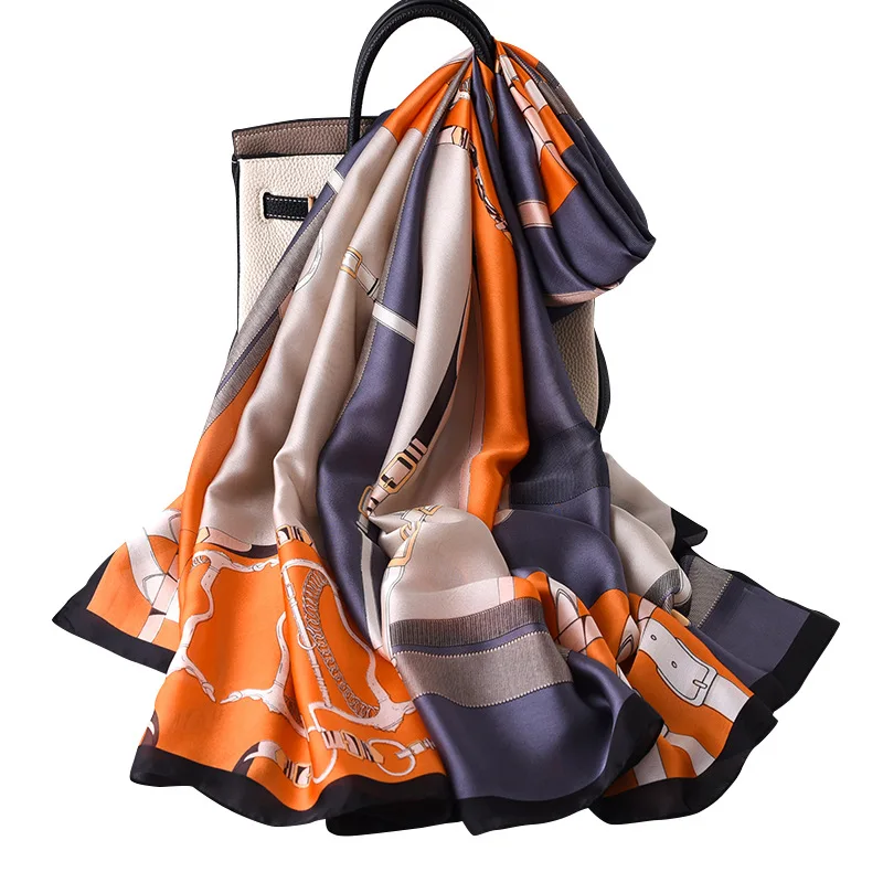 2022 модный шейный платок, пляжные шарфы, популярная шаль с принтом, пончо и накидки, летний солнцезащитный атласный шелковый шарф 180x90 см
