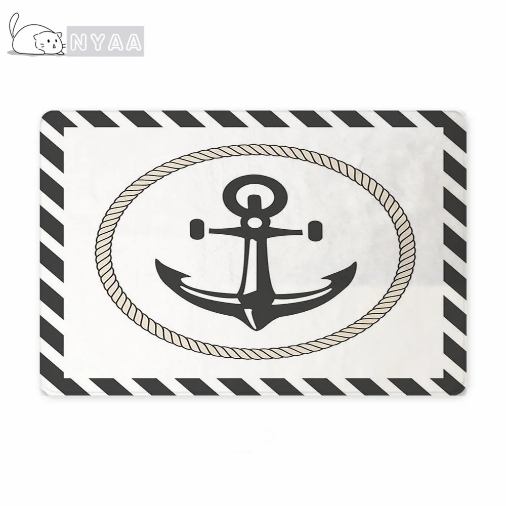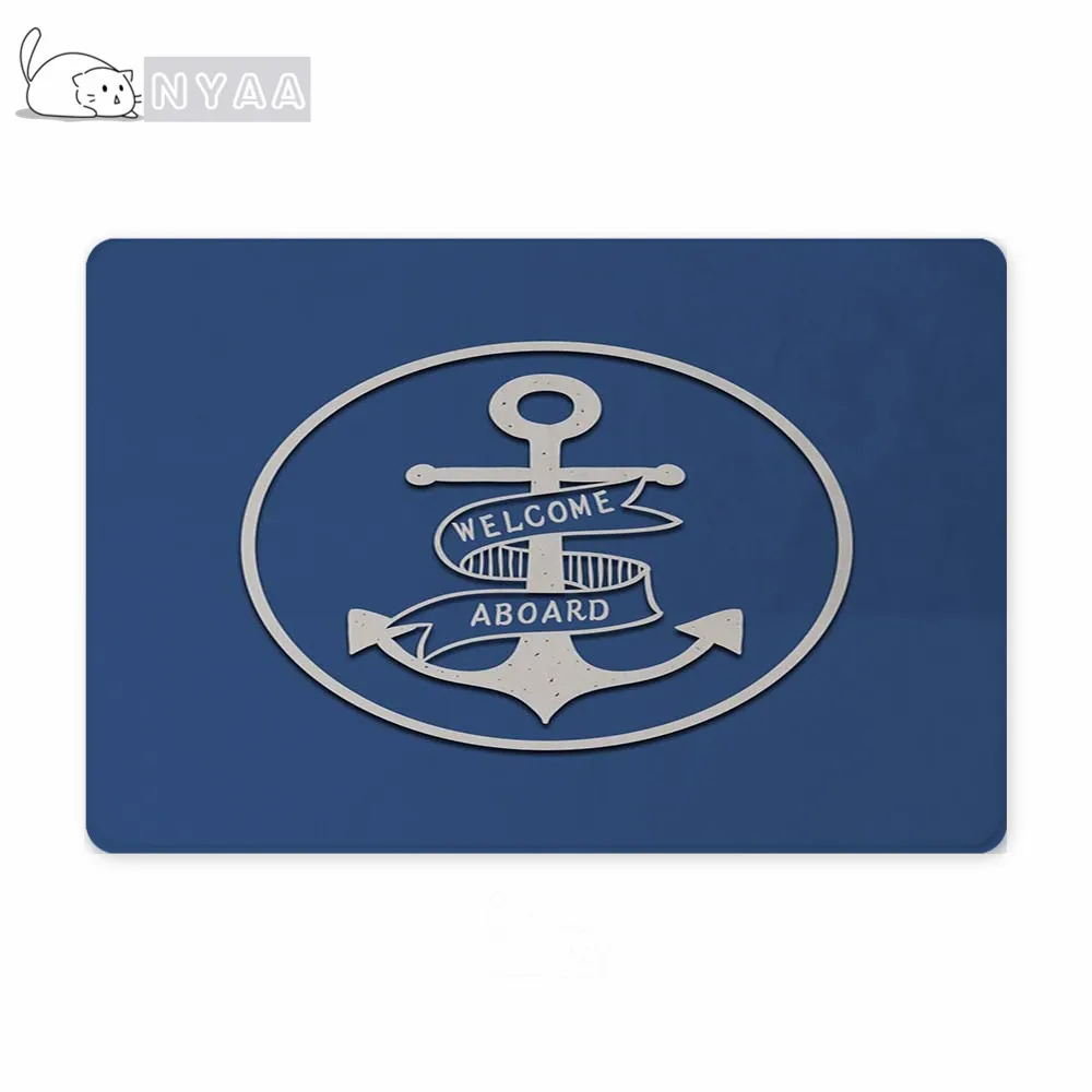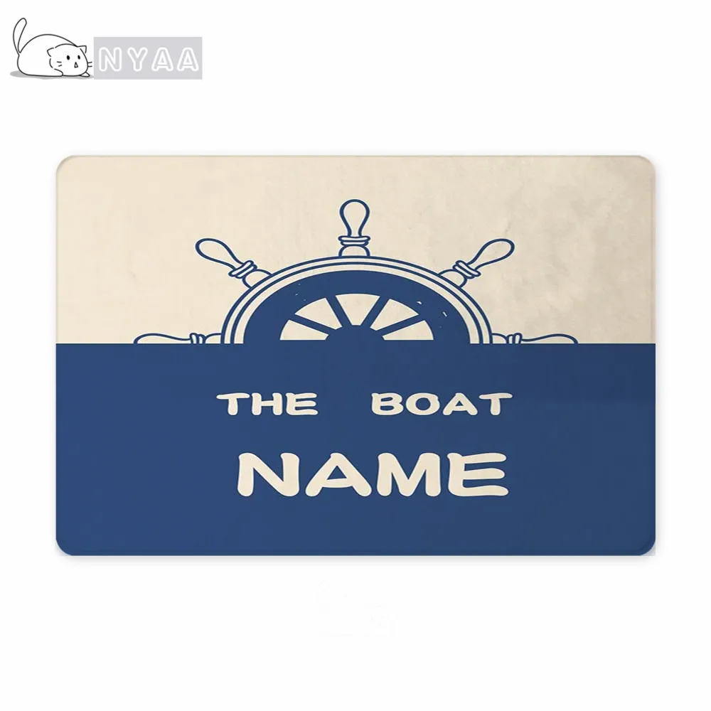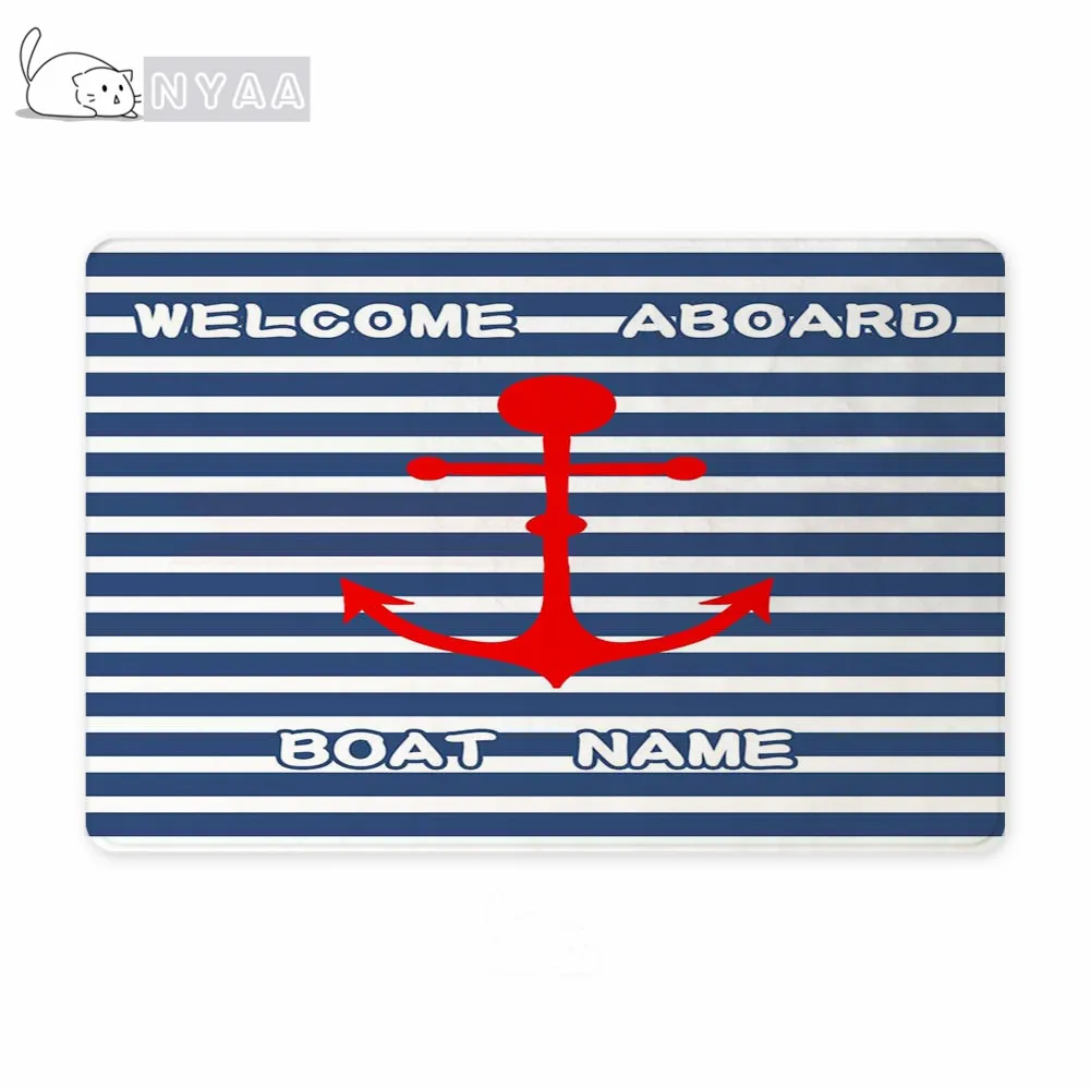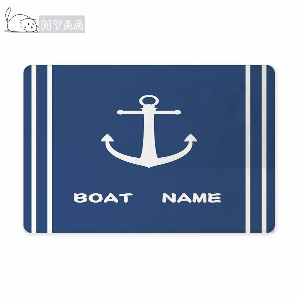 Шикарный морской якорь, лодка, темно-синие полосы, персонализированный дверной коврик, современный, под заказ, ваша лодка, название, резиновый дверной коврик, ковер, ковер, Декор