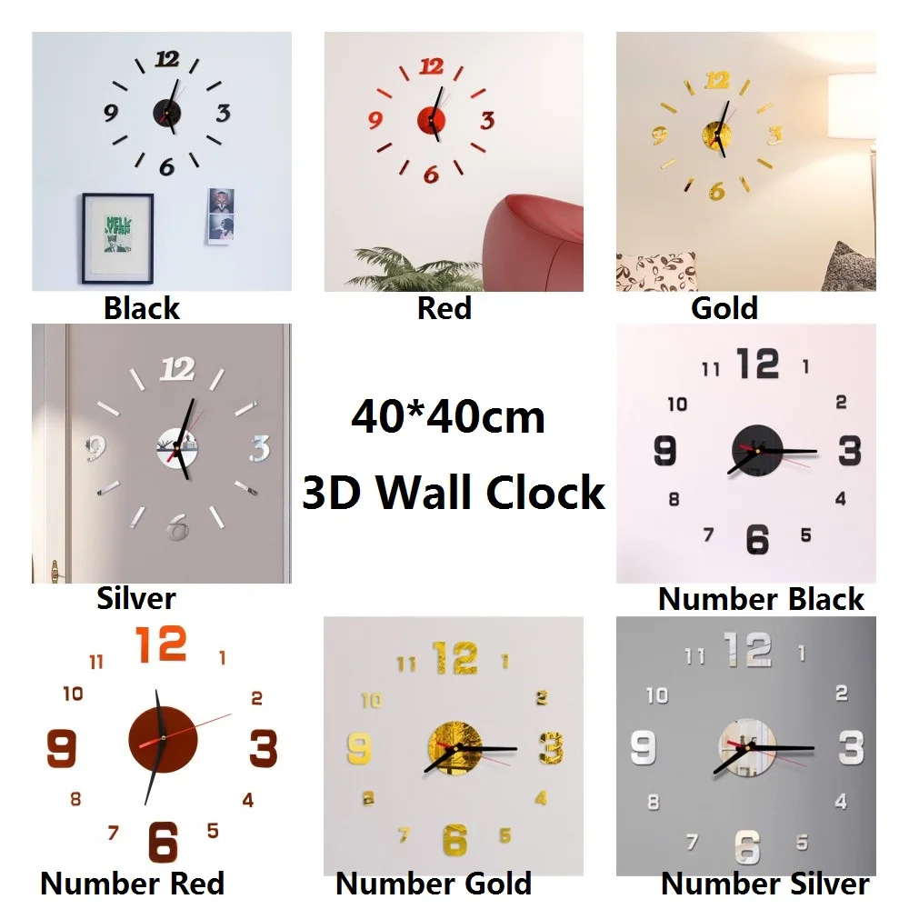 Посылка включает в себя: 1 х Трехмерные настенные часы настенные наклейки