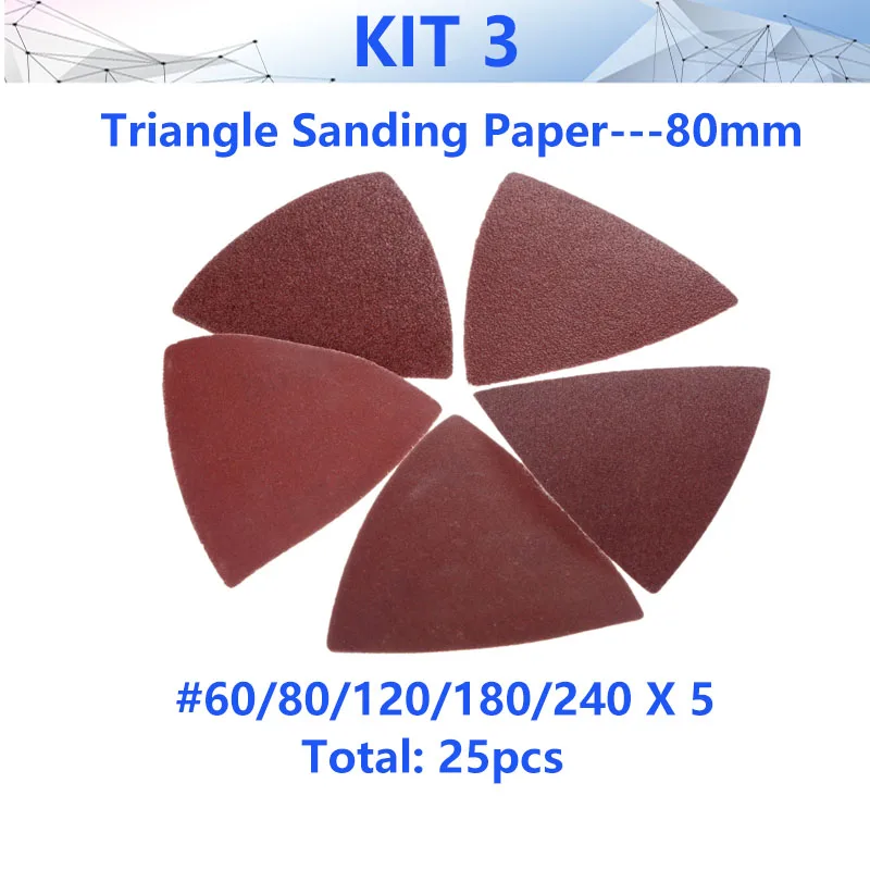 3,2 дюймов палец Треугольники шлифовальной бумаги 6080120180240 Грит для осциллирующего инструмента, шлифовка, полировка; шлифовка