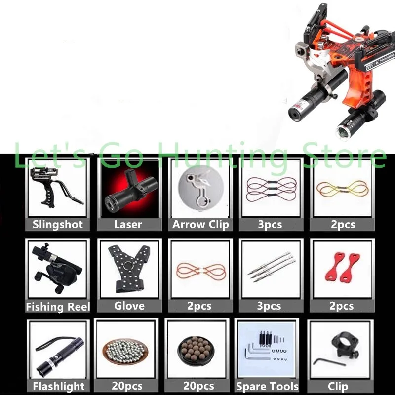 Профессиональная охотничья Рогатка из нержавеющей стали с пружиной, большая мощная катапульта, уличные рогатки, зеленый лазер с фонариком