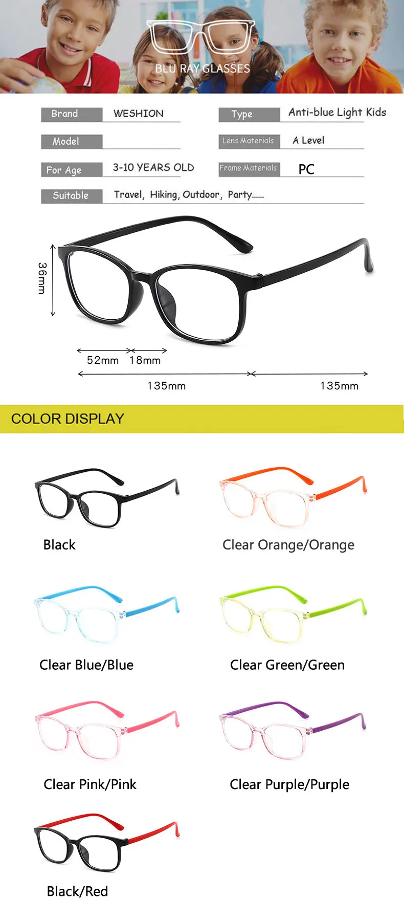 Очки с защитой от сисветильник, Детские прозрачные оптические очки ...