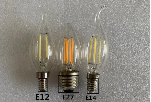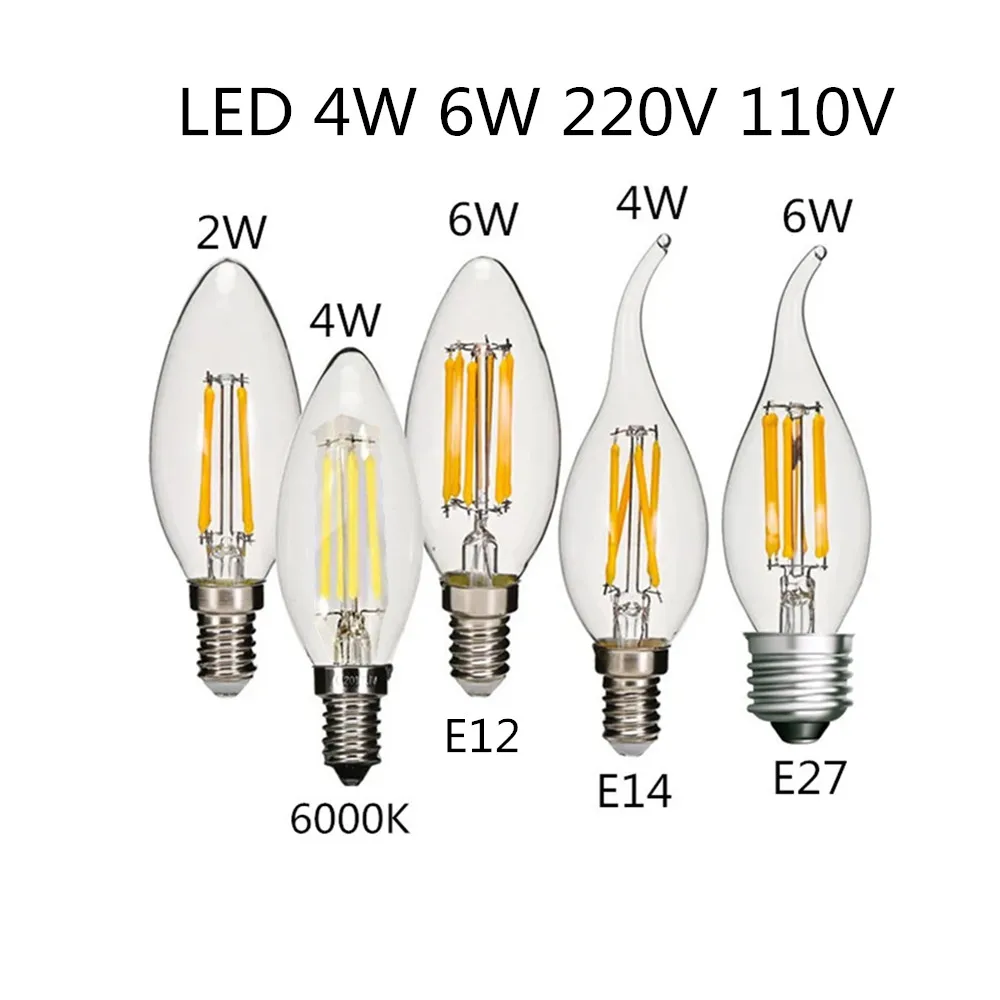 Светодиодная лампа C35, E14, E12, E27, 220 В, 110 В, с регулируемой яркостью, 2 Вт, 4 Вт, 6 Вт, энергосберегающая свеча, теплый белый свет, лампа накаливания 360 градусов, 10 шт.