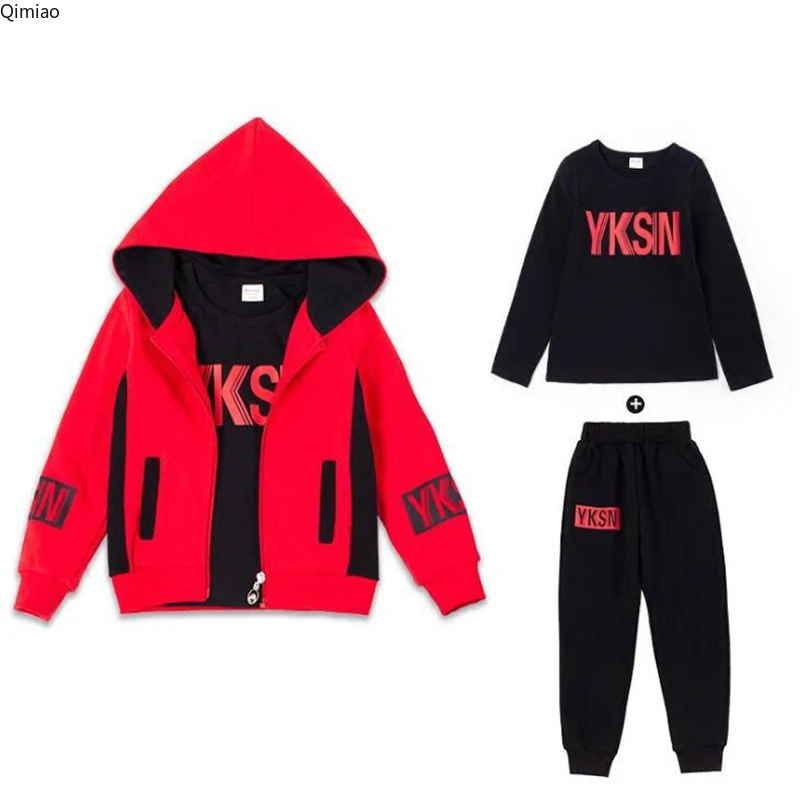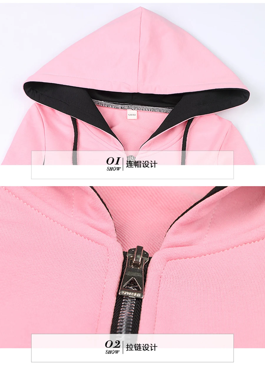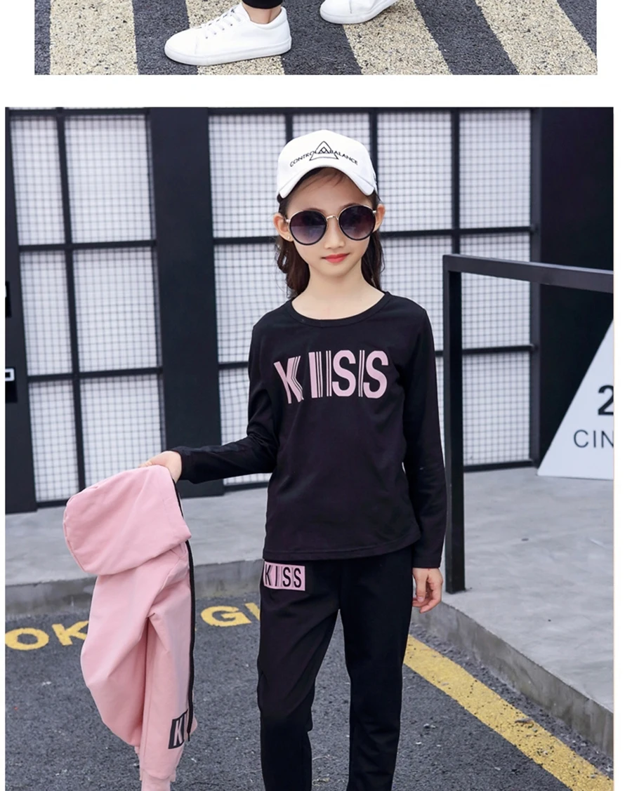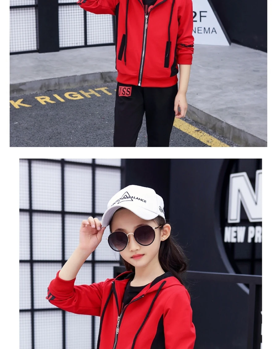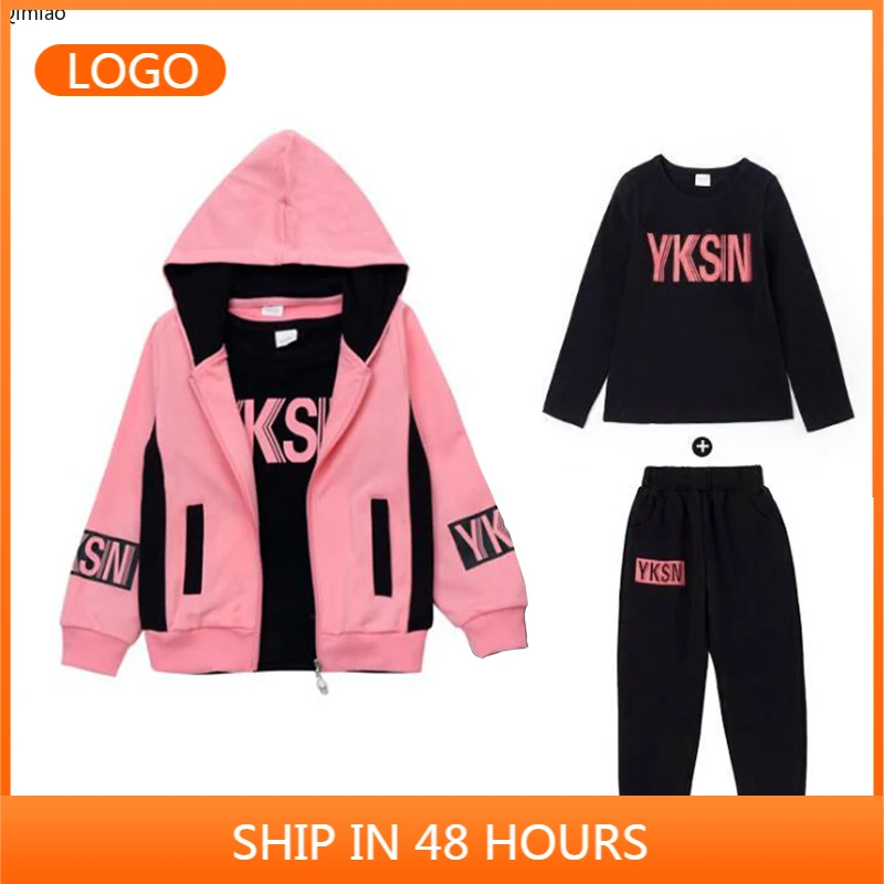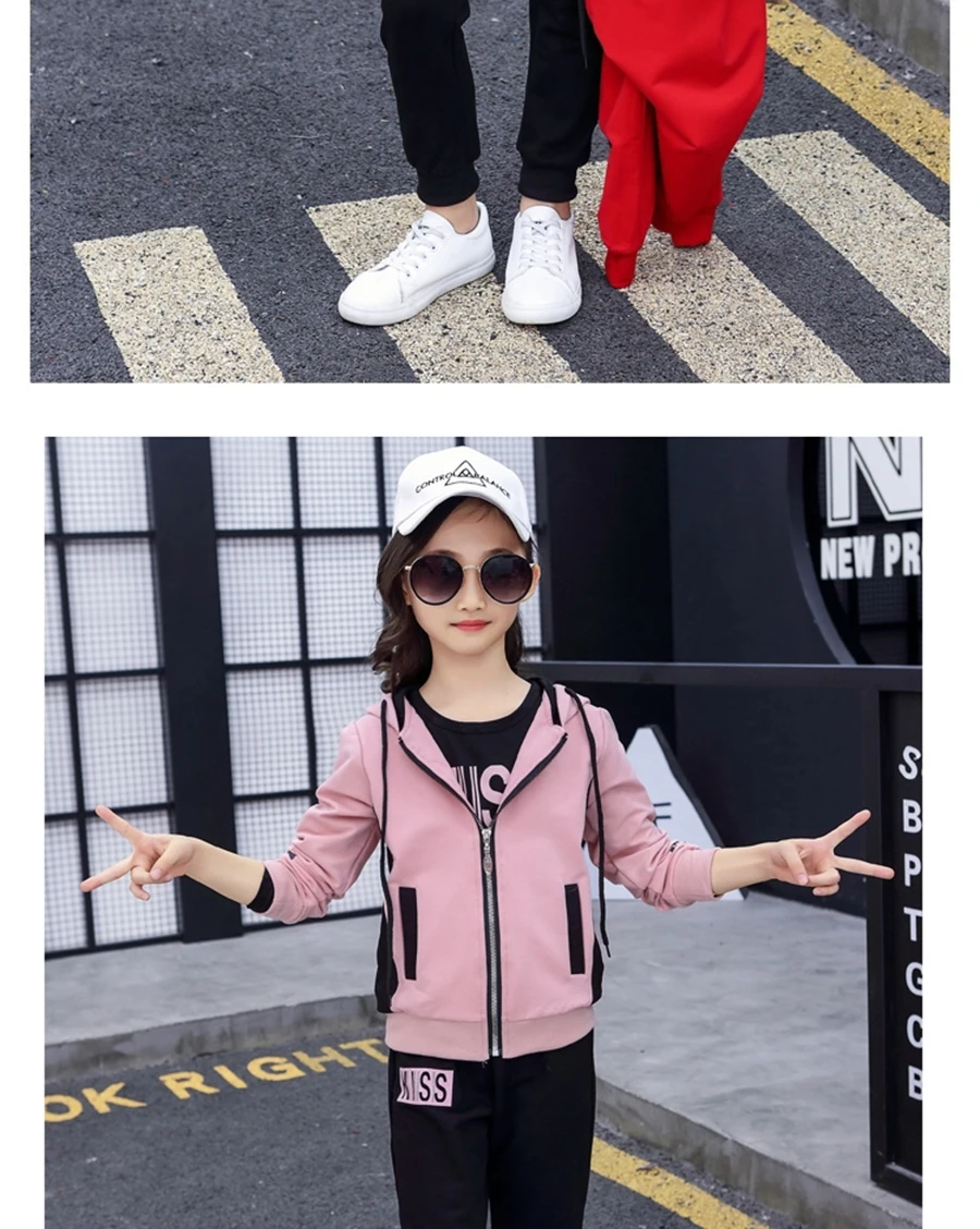 Спортивный костюм для девочек, одежда для 3 шт.компл. детская одежда из хлопчатобумажной ткани, трикотажная кофта на молнии с капюшоном + футболки + штаны, детский спортивный костюм для девочек, на возраст 5, 6, 8, 9, 10, 12, 13 лет