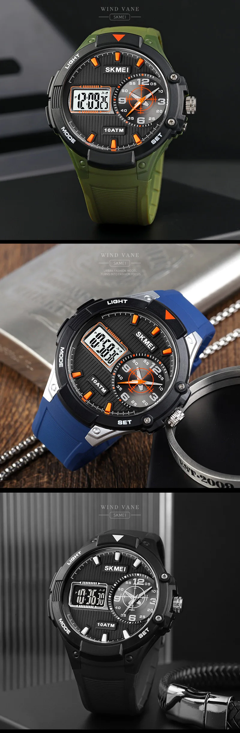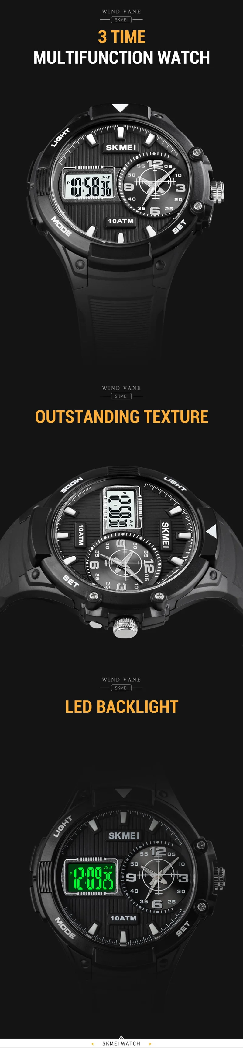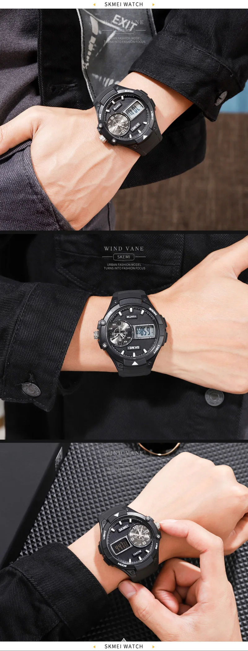 Часы наручные SKMEI Мужские кварцевые с двойным дисплеем, цифровые спортивные в стиле милитари, с обратным отсчётом времени 3