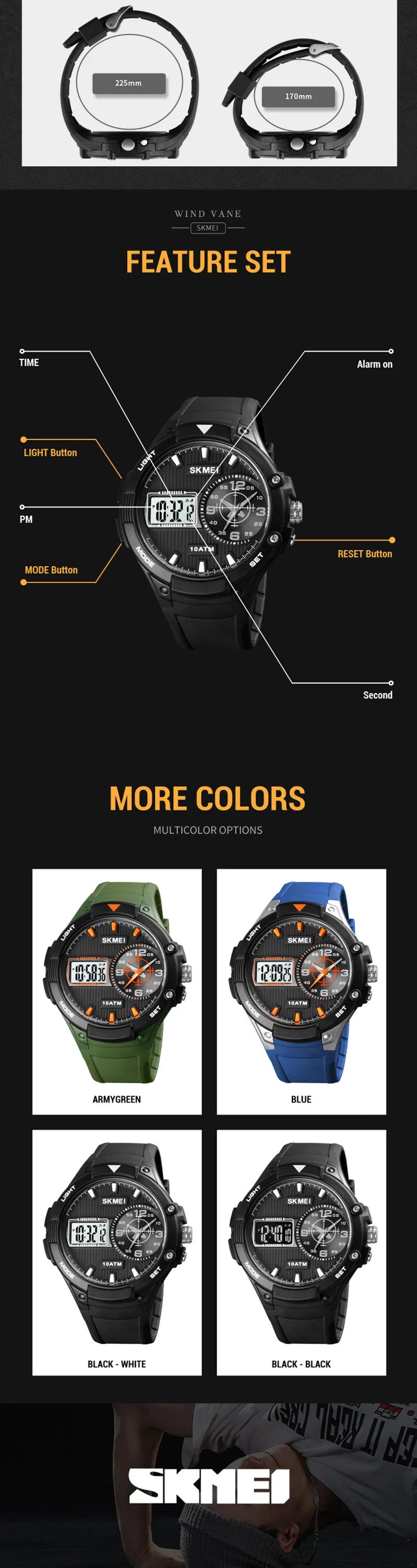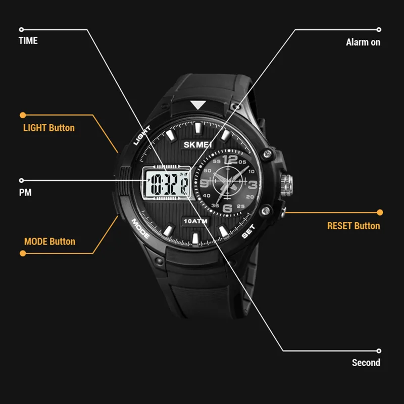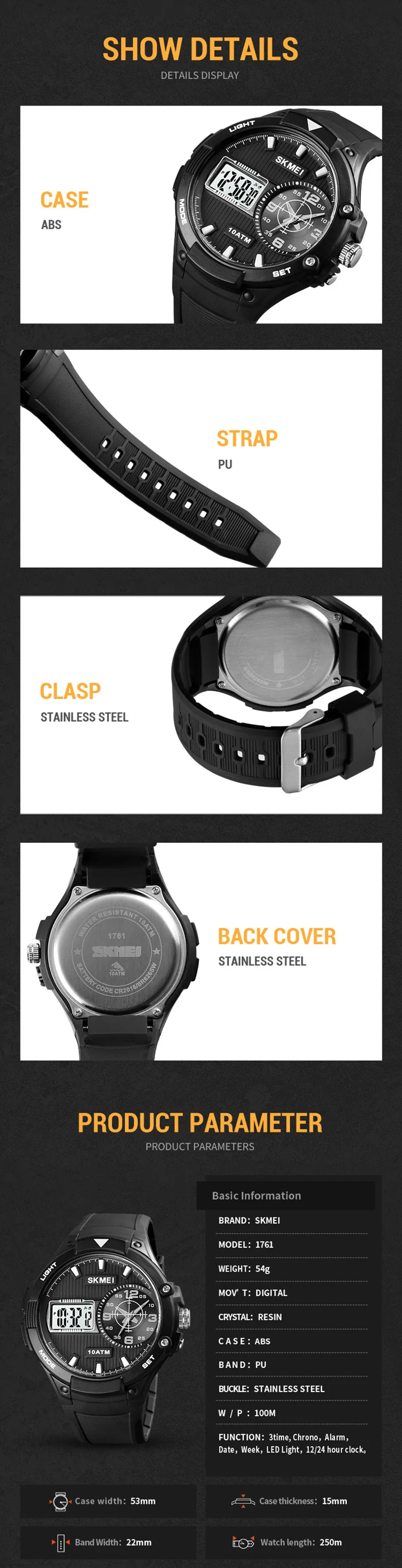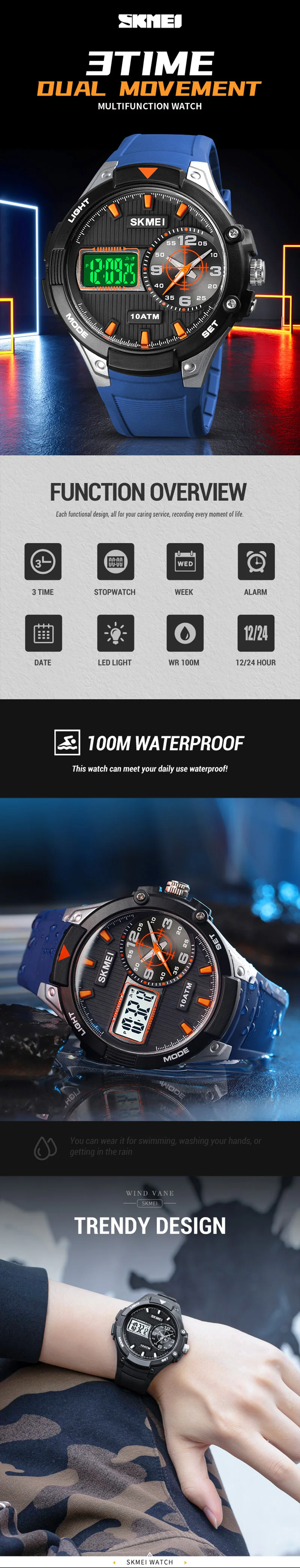 Часы наручные SKMEI Мужские кварцевые с двойным дисплеем, цифровые спортивные в стиле милитари, с обратным отсчётом времени 3