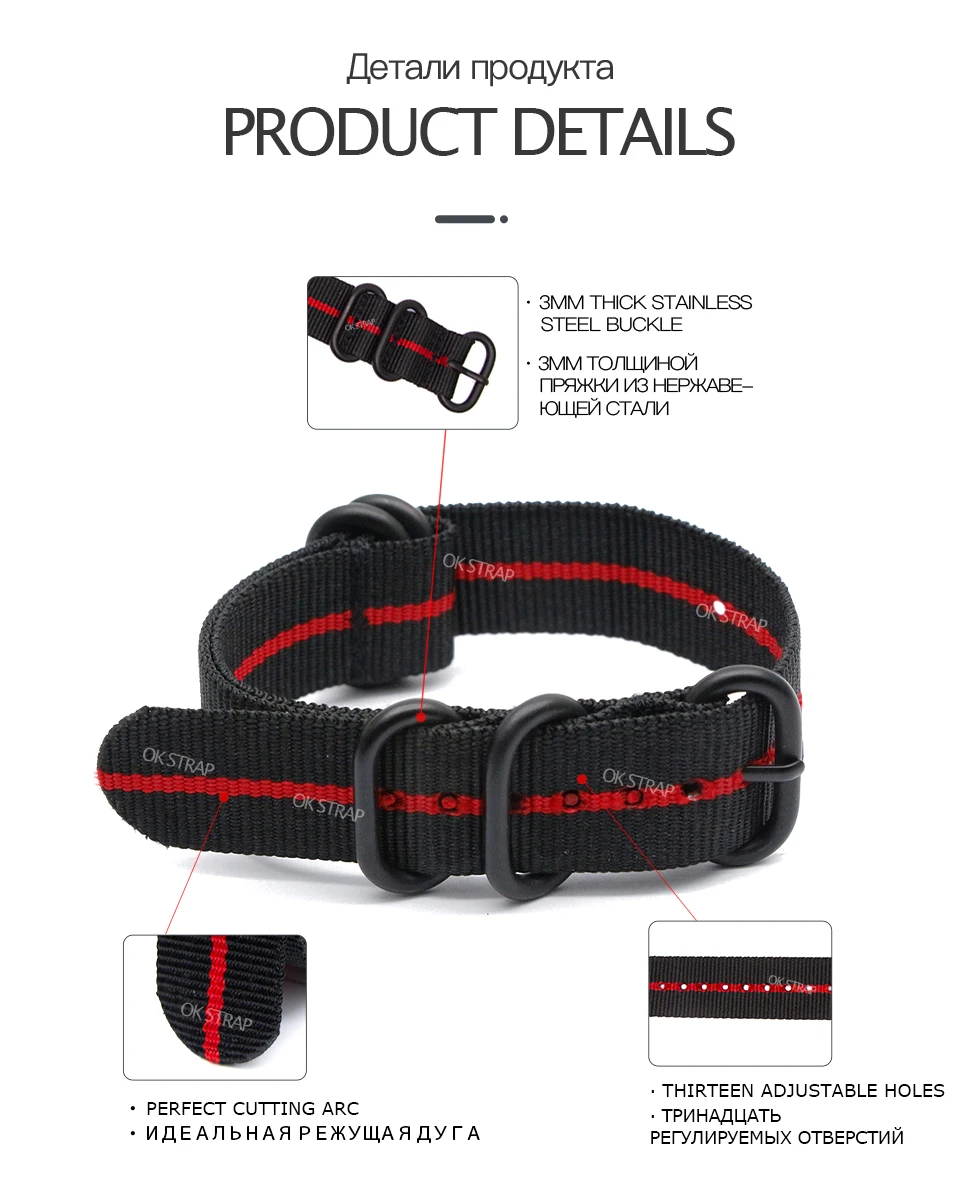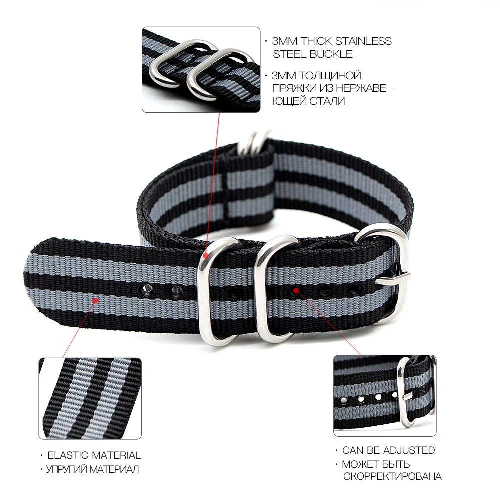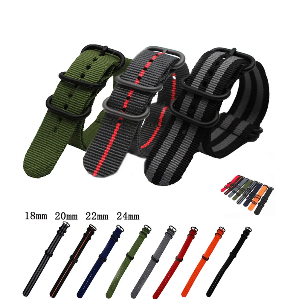 Армейский спортивный браслет для НАТО, нейлоновый тканевый полосатый браслет с черной тяжелой кольцевой пряжкой, 18 мм 20 мм 22 мм 24 мм
