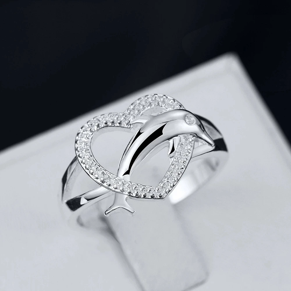 Женское кольцо с дельфином из серебра 925 пробы, в форме сердца