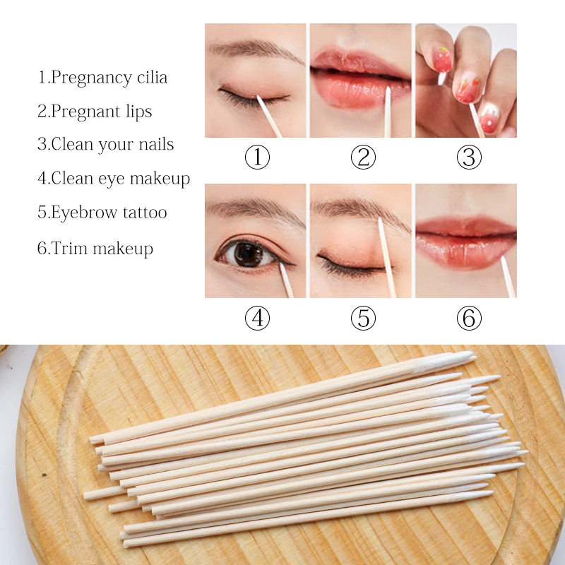 200 шт одноразовые ультра-маленькие деревянные Хлопковые Тампоны без ворса, Микро Кисти для наращивания ресниц, инструменты для снятия клея