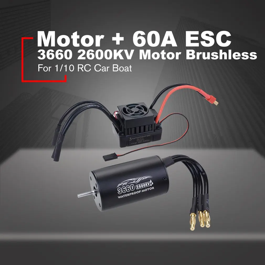 Новый мотор 3650 230031003900KV 3660 2600333800KV с комплектом ESC 60A, водонепроницаемый бесщеточный мотор для 110 RC Car Boat ESC Racing