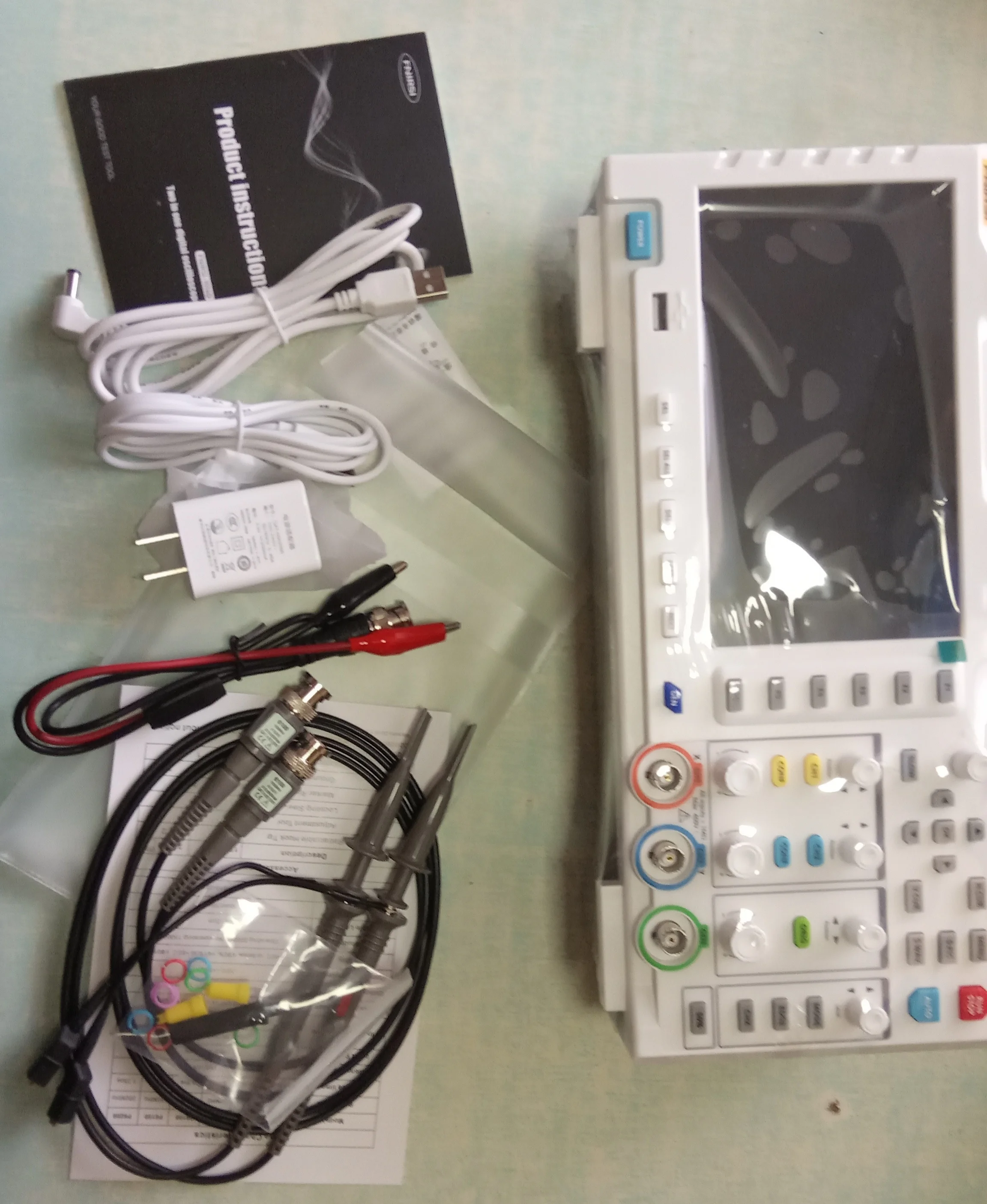 Осциллограф, как описано, инструкции приходят на английском языке, а сами наконечники имеют инструкцию по эксплуатации, очень полное оборудование. Мне понадобилась неделя, чтобы добраться до Мексики. Отличная покупка.