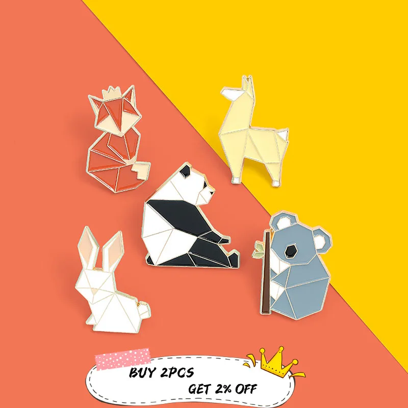 Оригами, лиса, панда, кролик, коала, альпака, эмалированная булавка...