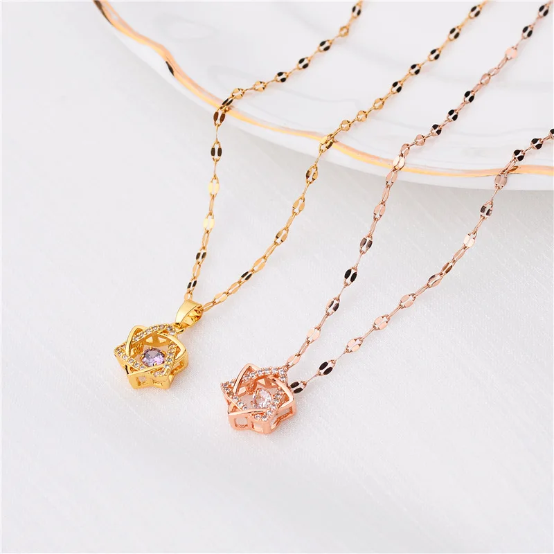 Модные элегантные губ цепи гексаграмма циркон ожерелье для женщин 2021 Новая мода из нержавеющей стали украшения на шею женские вечерние подарок