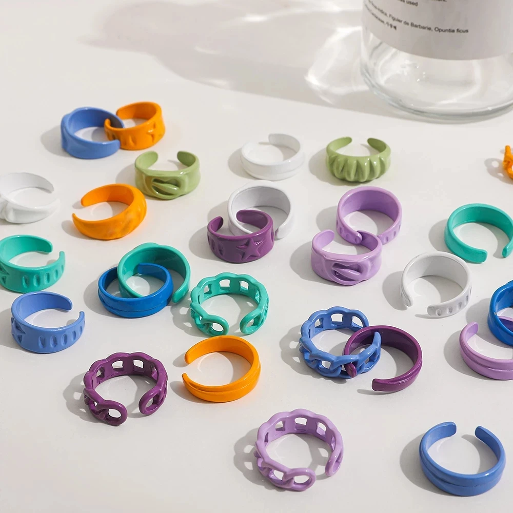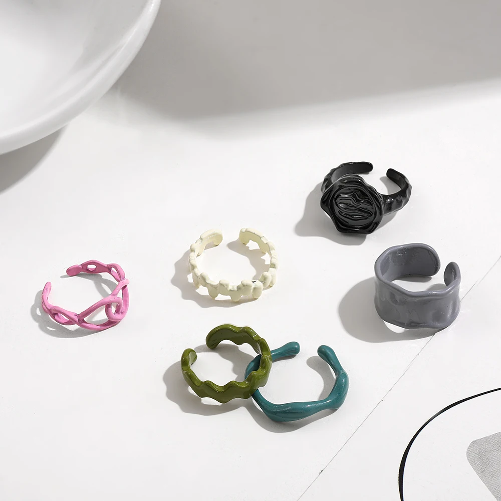 Женские кольца неправильной формы, разноцветные открытые кольца с масляной цепочкой, разные цвета, ручная роспись, 2021