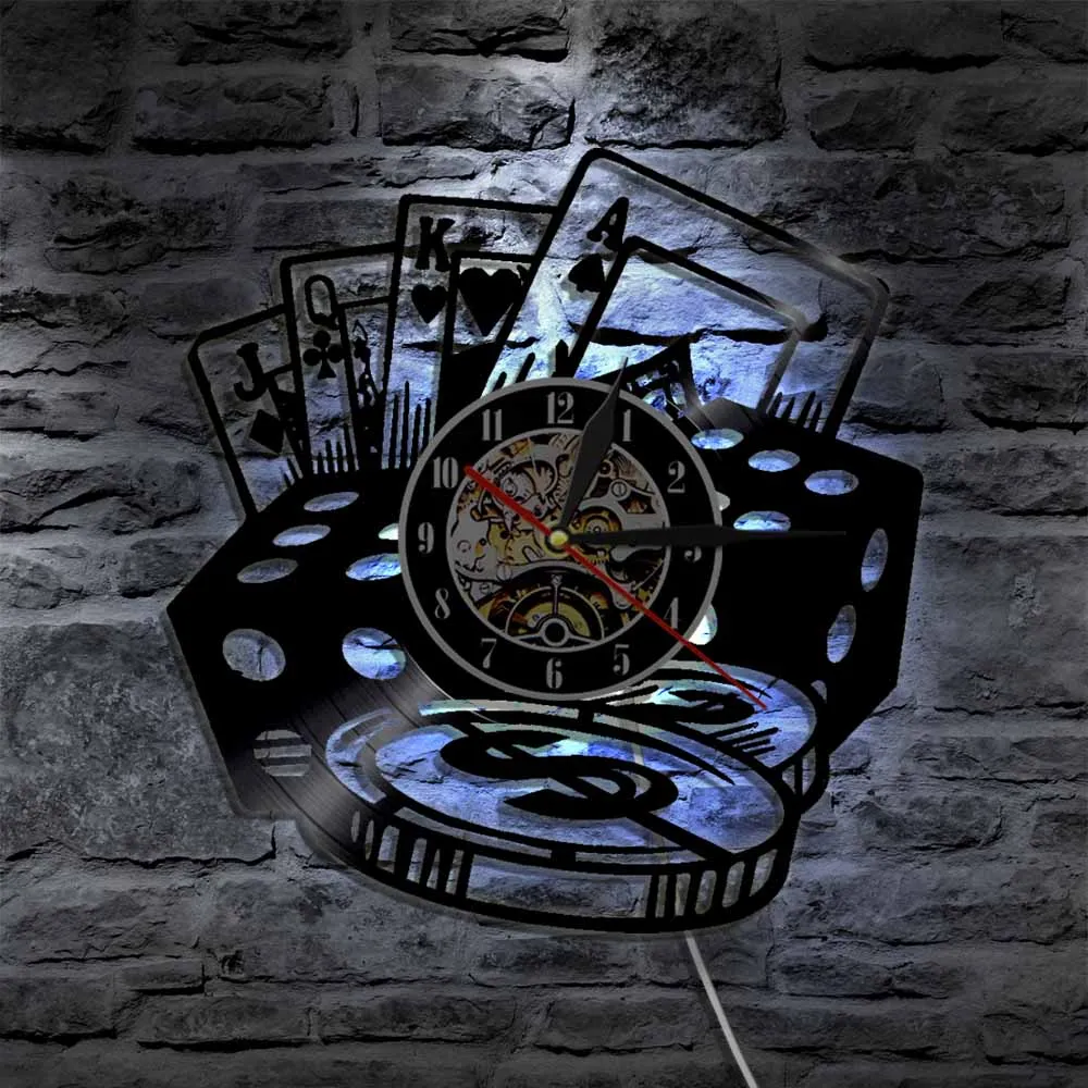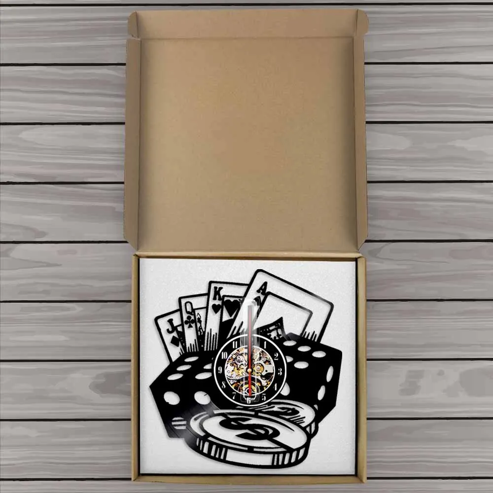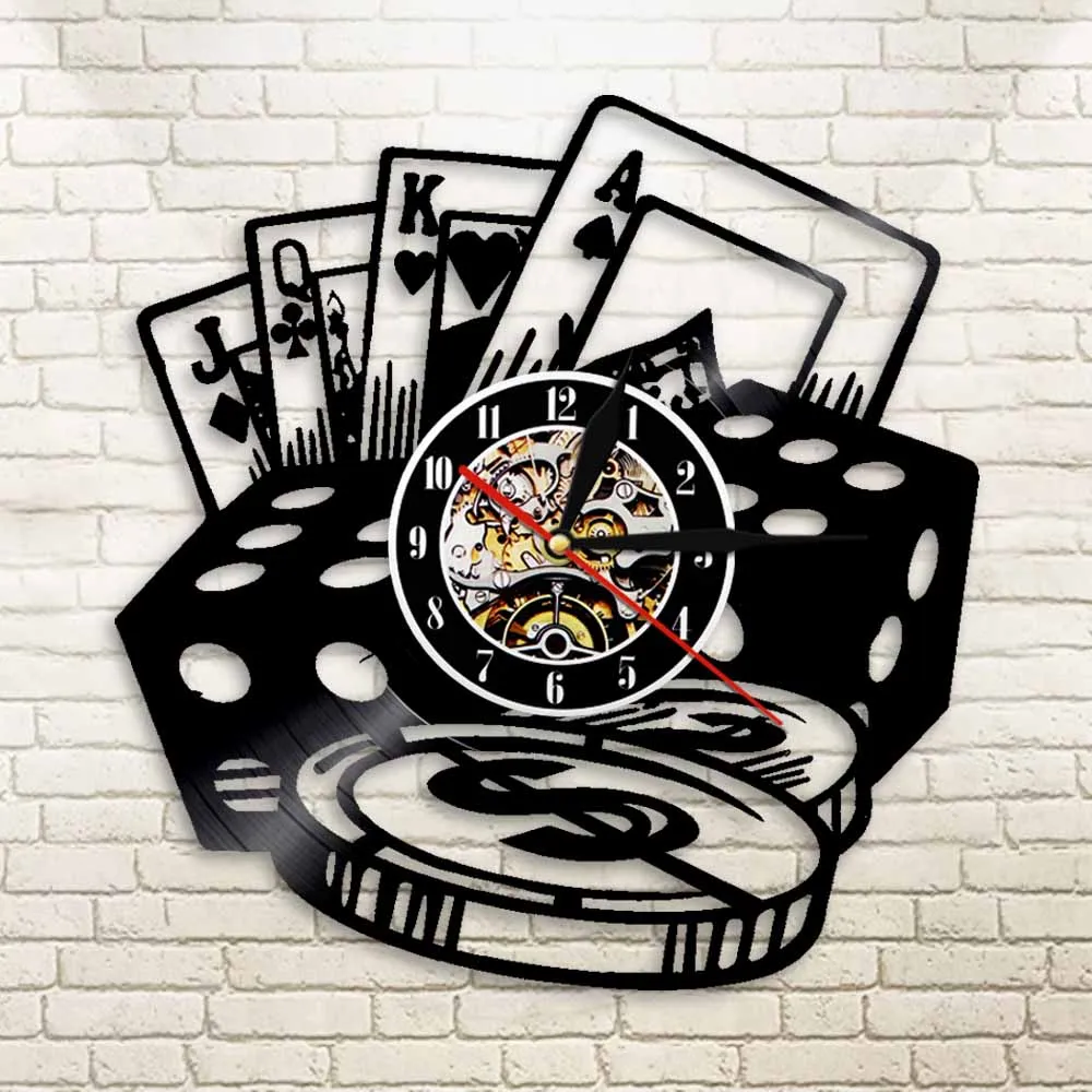 Настенные часы в стиле покерных костей, азартных игр, Виниловая пластинка, декор интерьера для игровой комнаты, клуба, бара, казино, эксклюзивные настенные часы