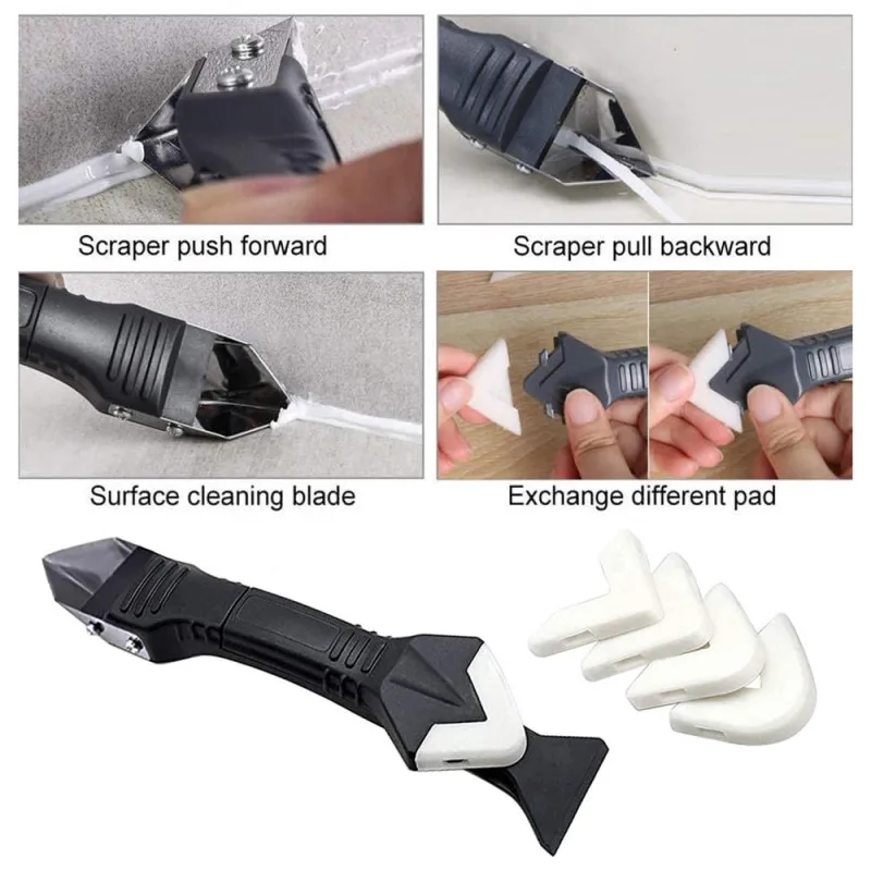1. Инструменты для нарезки и скребок из нержавеющей стали: Этот утолщенный инструмент может помочь вам отремонтировать зазор и очистить остаточный клей, который удобен и красив, улучшить Agglutinating качество и эстетическое чувство поверхности. 2. Два режима скребок: скребок из нержавеющей стали Легко удаляет упрямый старый клей. Шпатель шелкопряда для удаления ударов и вмятин поверхности. 3. Сменные 5 силиконовых подушечек: инструменты для нарезки были разработаны с нескользящей кнопкой нажима, замените 5 силиконовых подушечек, которые вы хотите 4.он был изготовлен из прочного утолщенного пластика, легко чистить, не тратя лишний колючек; И они многоразовые с долгим сроком службы. 5. Широкое применение и гарантия: эти инструменты можно использовать для дома, кухни, ванной комнаты, резервуара, окна, соединение радиатора и так далее.