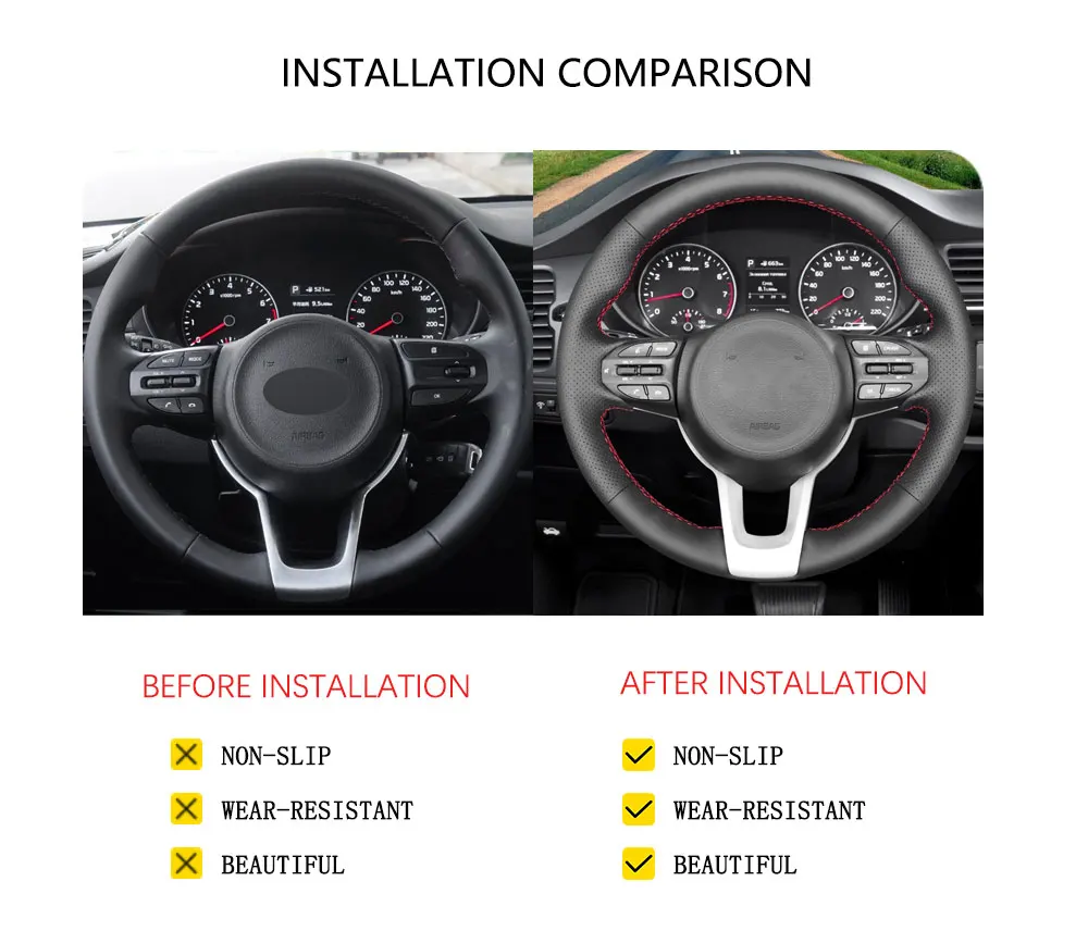 2.Чтобы лучше соответствовать вашему рулевому колесу,Пожалуйста, не снимайте оригинальный кожаный рульПеред установкой!