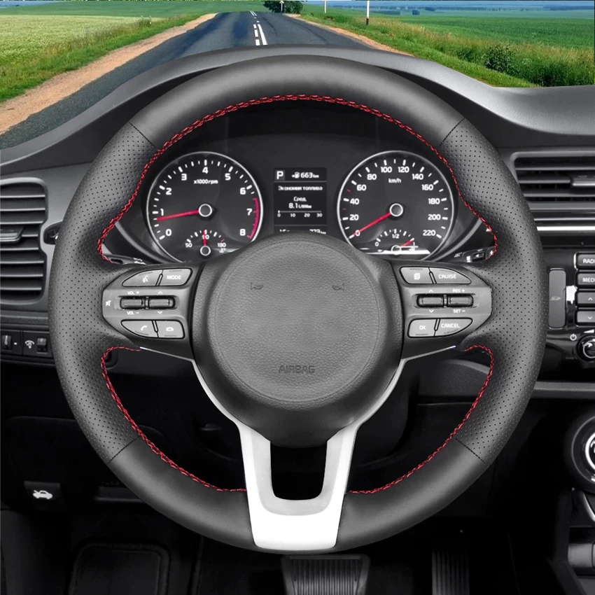 Черная искусственная кожа ручной работы без скольжения чехол рулевого колеса автомобиля для Kia Rio Rio5 K2 Picanto Утро 2017-2019