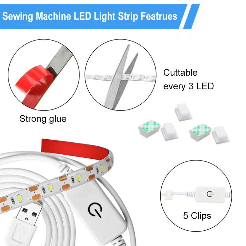 Набор светодиодных лент для швейной машины, гибкая клейкая лента, USB с сенсорным диммером